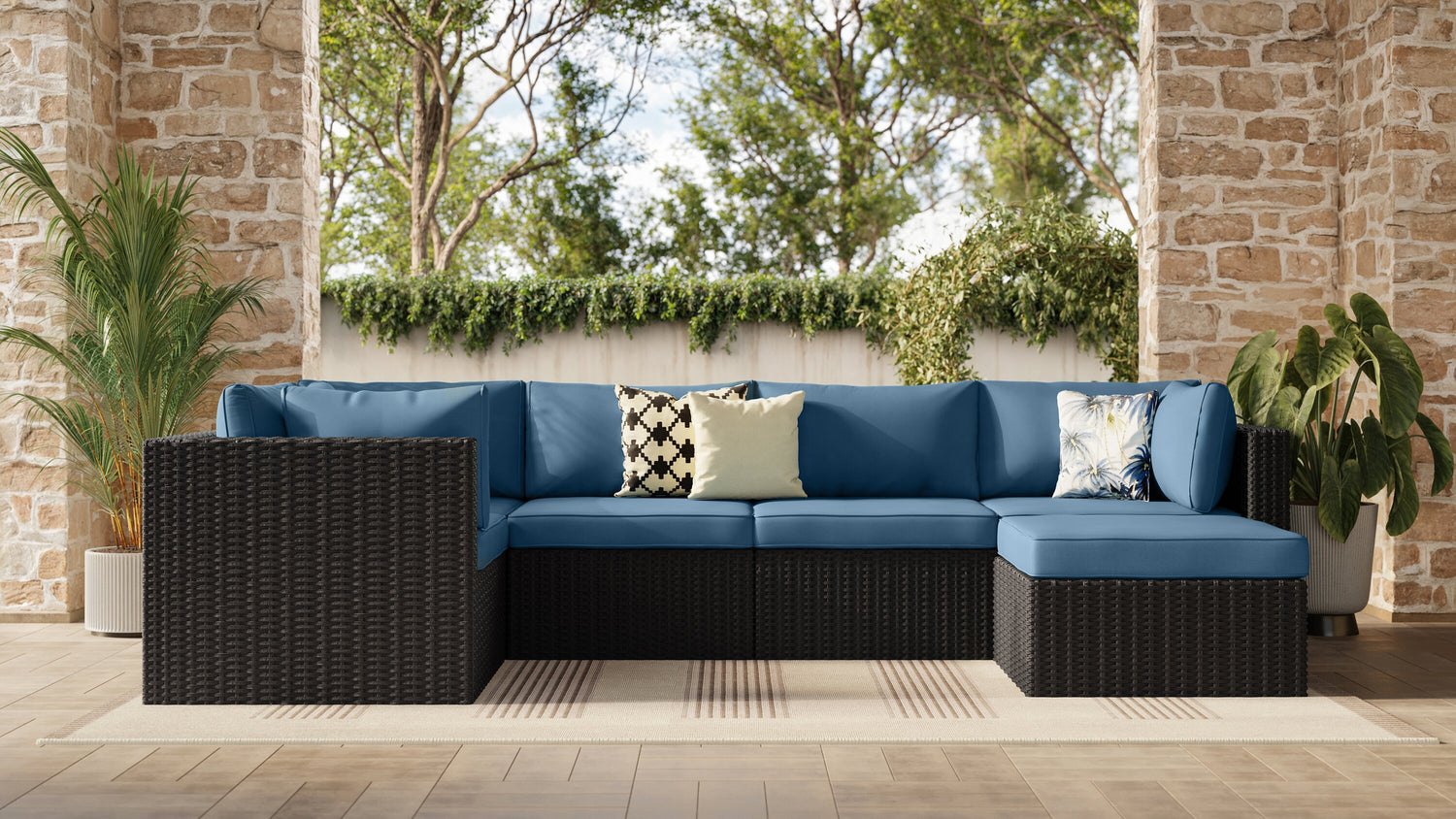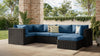 Barbados Corner Outdoor Patio Chair - Hand-Woven Resin Wicker, UV & Weather Resistant - Black/Blue