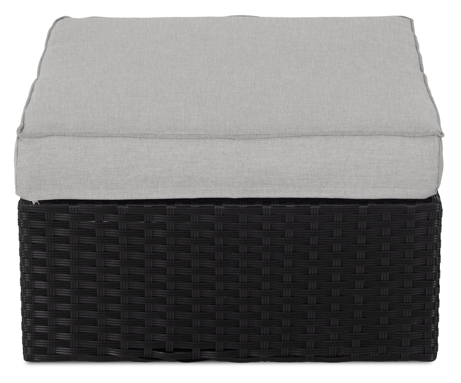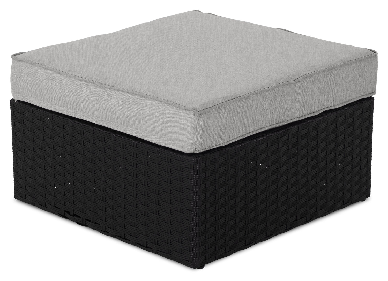 Barbados Outdoor Patio Ottoman - Hand-Woven Resin Wicker, UV & Weather Resistant - Black/Grey
