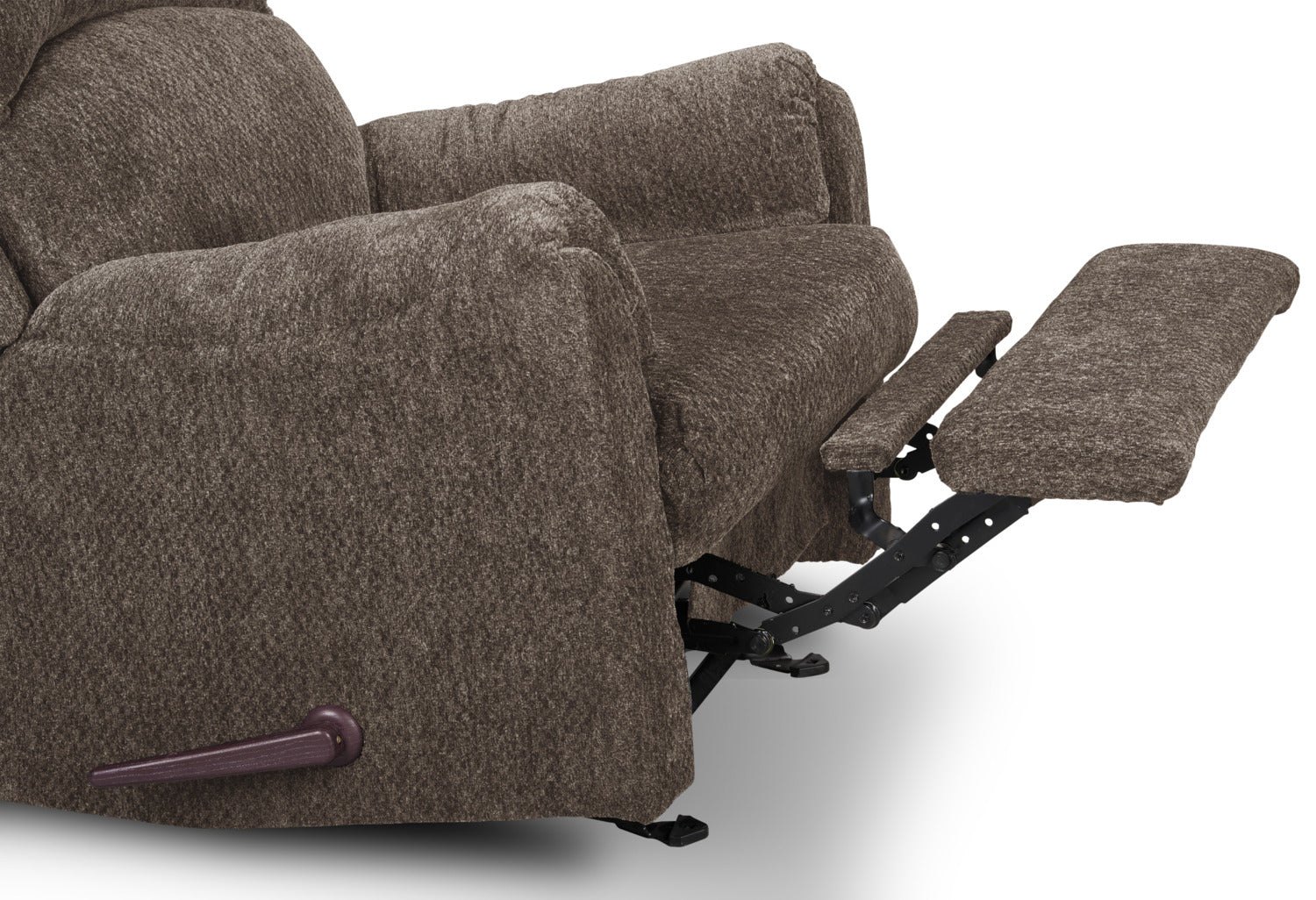 Create a comfortable lounging area in your living space with this Baron glider recliner. Velvety-feeling chenille envelops this chair to give your home a cozy look. Meanwhile, high-density foam softens the seating area while remaining supportive enough for your relaxation needs. Glide the chair into your perfect TV watching position, or use the reclining feature to gift yourself with some relief.