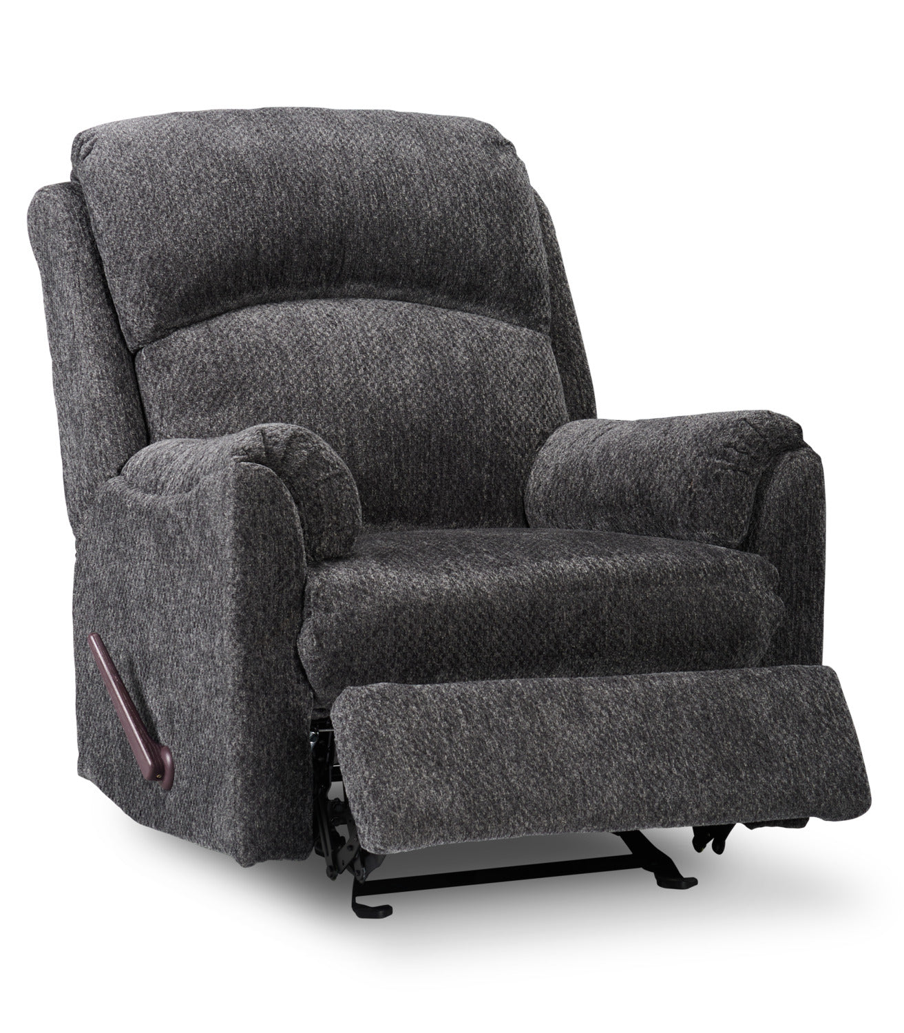 Create a comfortable lounging area in your living space with this Baron glider recliner. Velvety-feeling chenille envelops this chair to give your home a cozy look. Meanwhile, high-density foam softens the seating area while remaining supportive enough for your relaxation needs. Glide the chair into your perfect TV watching position, or use the reclining feature to gift yourself with some relief.