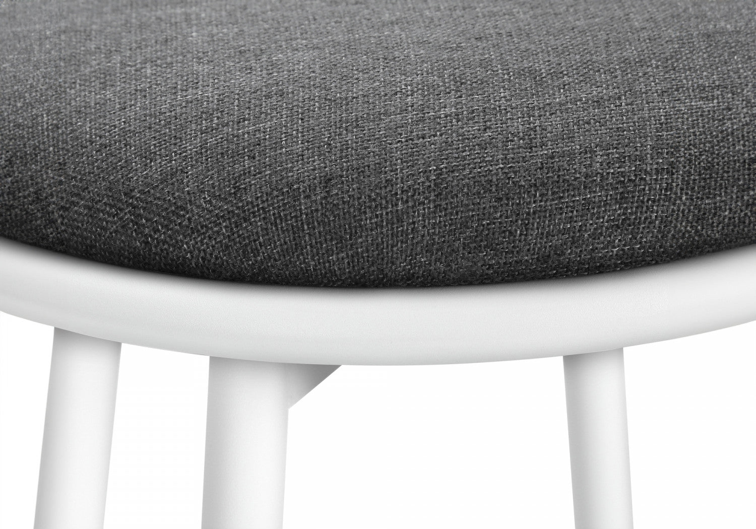 Introducing these stylish and comfortable set of 2 swivel barstools, a perfect addition to any home bar or kitchen counter. This 2-piece set is crafted from sturdy white metal and cushioned seats upholstered in grey fabric, adding a contemporary element to your dining and entertainment space. At 37 inches high, these bar height stools feature a curved low back for support and bottom footrest for added comfort. Each bar stool is easy to assemble with full illustrated instructions included. Best of all, they come with a 2 year limited warranty against manufacturer's defects for worry-free use. Add it to your home and enjoy the fashionable style and ultimate comfort of these barstools.