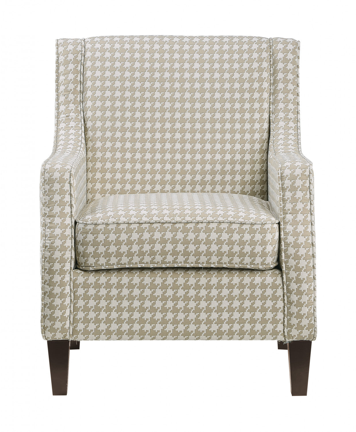 A contoured profile paired with a traditional houndstooth print makes the Beagle Accent Chair a classic addition to your home’s decor. The sloped arms, thick seat cushion, and surrounding padding combine to form a stately design imbued with supportive comfort. Welted seams delineate the chair's profile atop exposed espresso-finished wooden legs for a neatly tailored appearance. Available in either blue or khaki fabric, this charming patterned chair is the perfect way to infuse your living room with contemporary appeal.