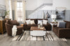 | Accent Details | Black metal brackets lend an industrial edge to this antique-look table. |