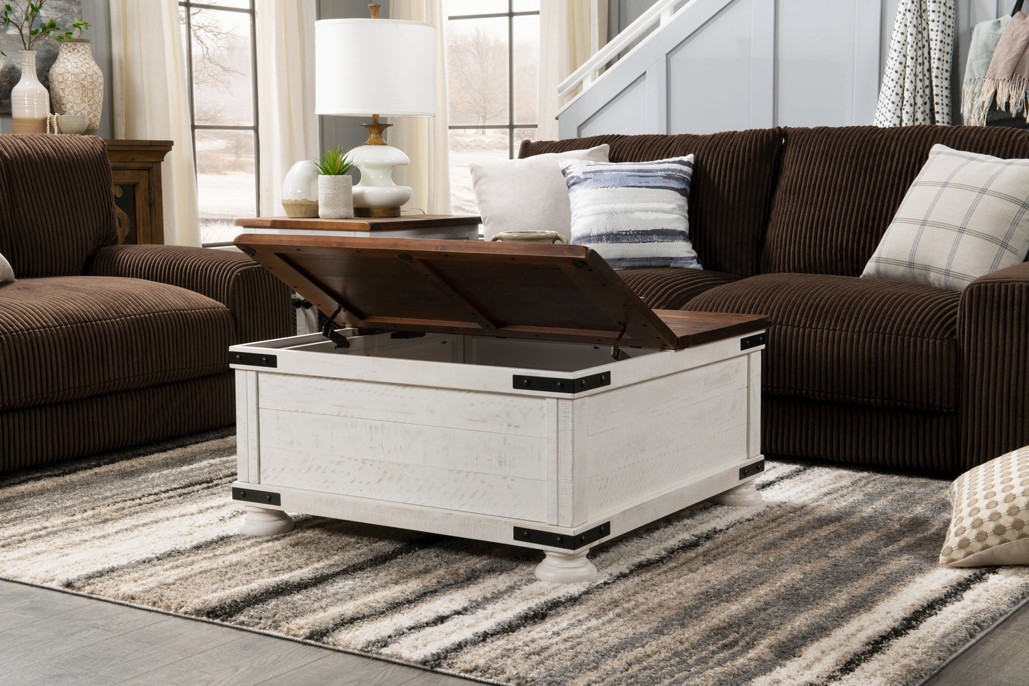 | Storage Options | Lift the tabletop on either side for storage space. |