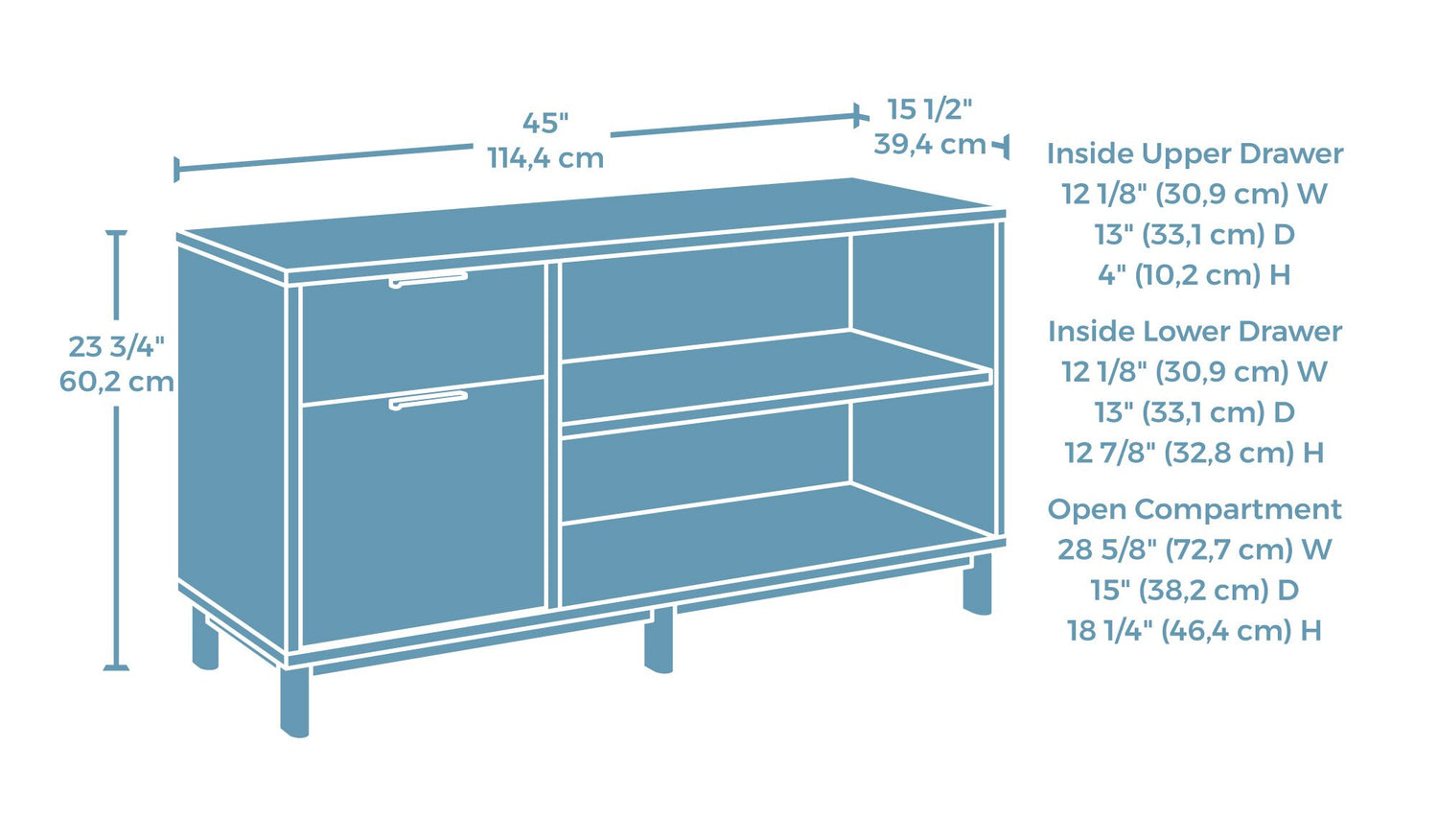 Width: 45.04" (114.4 cm) Height: 23.70" (60.2 cm) Depth: 15.51" (39.4 cm)