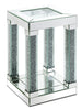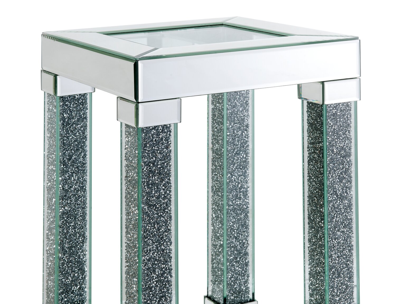 | Accent Details | If its glass construction didn’t already lend enough glamour, there are sparkles encased inside each of the table’s four centre pillars like a museum display. |