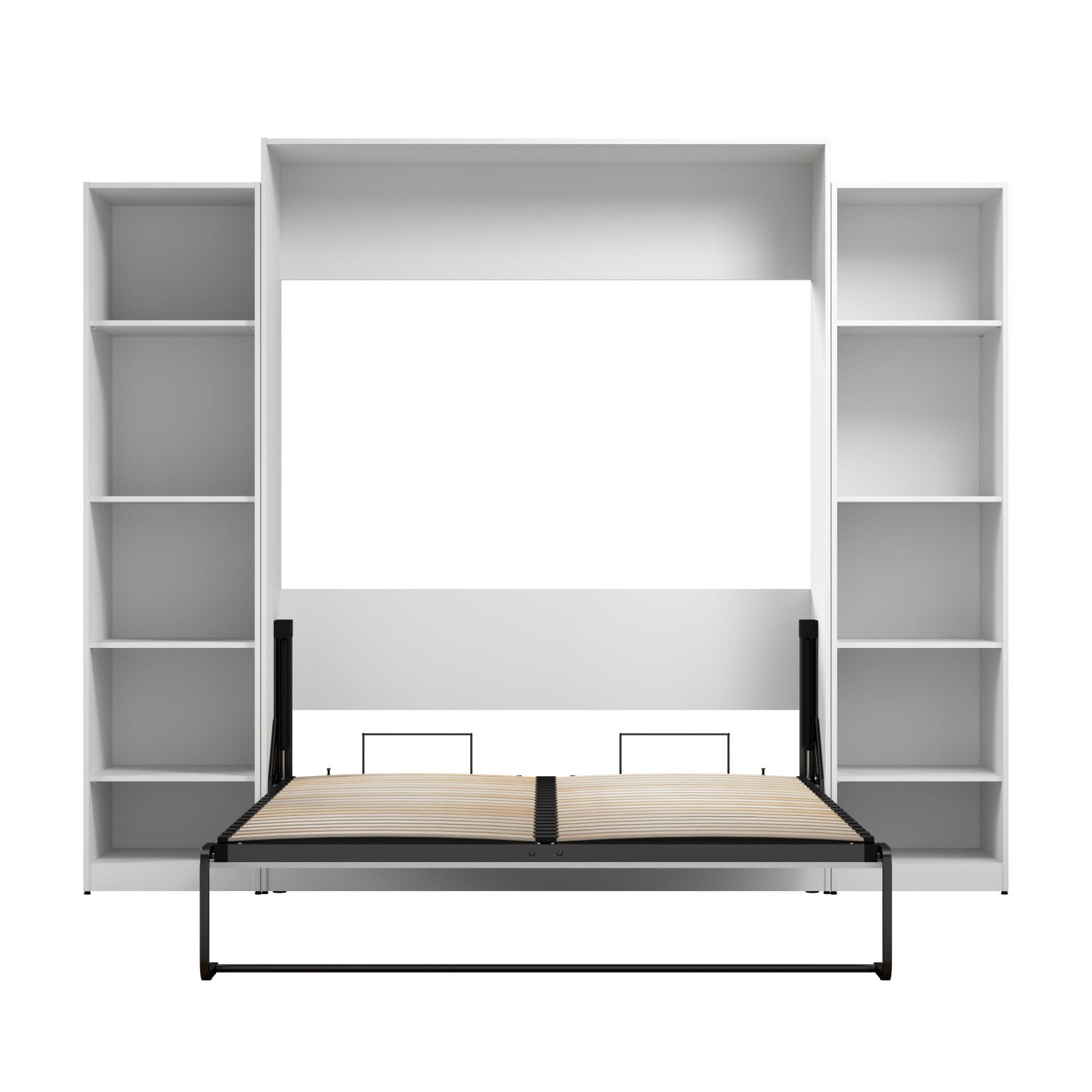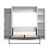 Blending affordability and style, the Bestar Claremont Queen Murphy Bed with Closet Organizers (105W) is the perfect sleeping arrangement for any space. Dual pistons fold the Queen Murphy bed down smoothly. The mattress support features flexible slats that absorb pressure for comfort. Wall bed accepts most queen size mattresses. Use the closet organizers to store clothes and linen. The open bed extends 91.2 inches from the wall.
