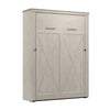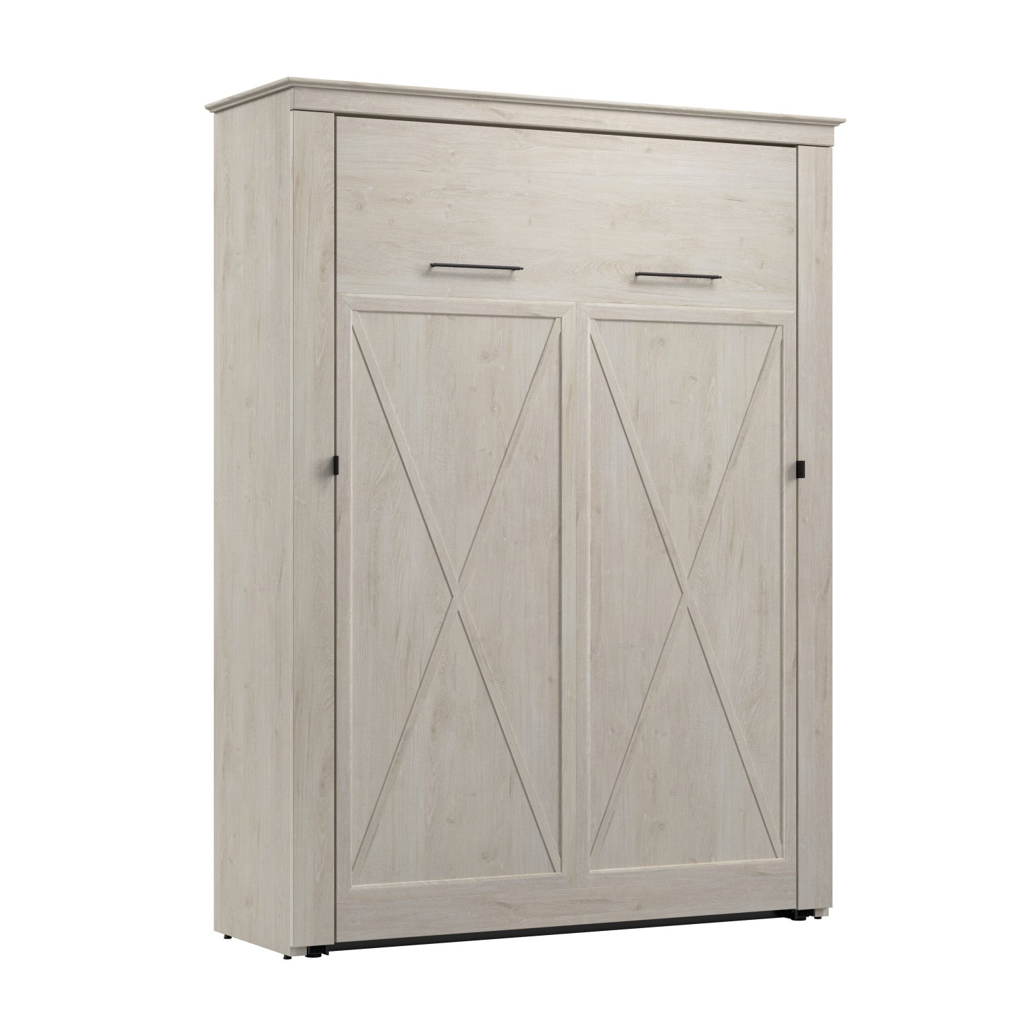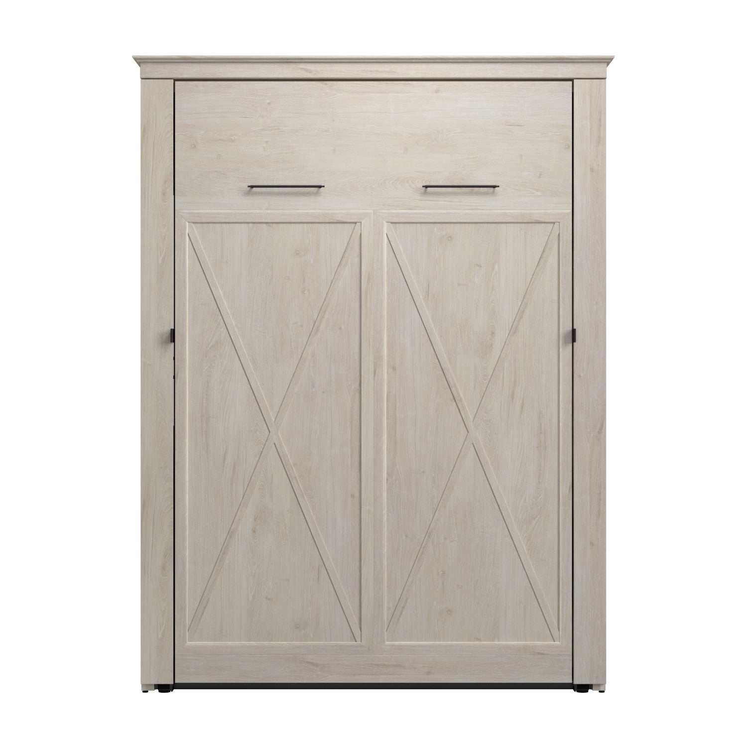 The Bestar Key West 63W Full Murphy Bed is the ideal space saver for a multipurpose room. The mattress support uses flexible slats that follow the curves of the body and absorb pressure. Unique X pattern accents paired with Antique Bronze hardware create a relaxed and airy style that works well with coastal and farmhouse decor. The Full Murphy bed can be used every night, and it folds up and down smoothly and quickly thanks to the dual piston system. Choose your own mattress since the bed accommodates most standard Full mattresses (8-10 inches thick, 60-90 lb, 54 x 75 inches) and supports up to 1000 lb (including mattress). The open bed extends 88.2 inches from the wall. Allow a clearance of 30-36 inches around the open bed. The dual-mount wall bed mechanism attaches to the floor and wall for ease of assembly and maximum stability and durability. To avoid risk of injury, the Murphy bed must be installed to wall and floor structure by a professional or qualified person. Two people are required for assembly. Installation requires attachment to wood studs or masonry, removal of the baseboard, and drilling into the floor (if disassembly is required, holes may be covered with baseboards 0.5 inches or thicker). All necessary hardware is included. The cabinet must be anchored to a wall with a minimum ceiling height of 87 inches. Do not use this product for children or pets under 50 pounds (22.7 kg). The Murphy Bed is backed by the Bestar 10 Year Manufacturer’s Warranty.