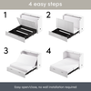 Experience the perfect blend of cottage-chic style and hassle-free functionality with the Bestar Key West 65W Queen Murphy Cabinet Bed with Pullout Drawer and Mattress. Built around a fully assembled drawer system with full-extension slides and 12 casters — no clunky springs or complicated mechanisms — this sleek cabinet transforms into a comfortable bed in a flash. Simply pull out the sturdy platform to reveal a cozy mattress, instantly ready for guests or an impromptu nap. The farmhouse-inspired X-pattern accents and aged bronze handles add a warm, homey touch, while a discreet storage drawer keeps extra pillows and blankets close at hand. A built-in power grommet provides a handy spot for charging devices or plugging in a bedside lamp. Wherever you place it, this cabinet bed brings inviting comfort and timeless style to your space.