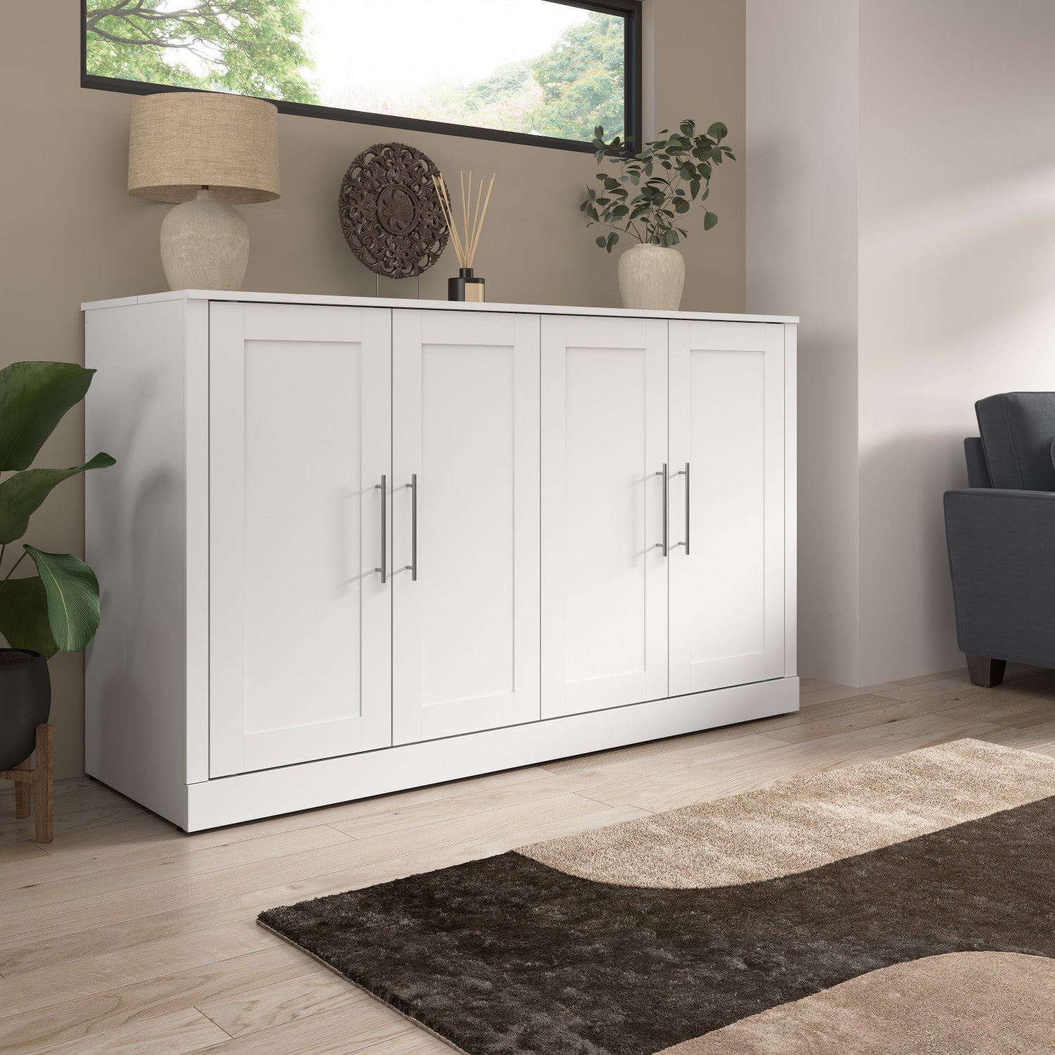 The Bestar Pur queen cabinet bed is a space-saving solution ideal for a multipurpose guest bedroom. When the cabinet is closed, you have a lovely sideboard that blends into any room. When the cabinet is open, it reveals a comfortable foldable bed. The included queen folding foam mattress provides comfort to anyone using the bed for a restful sleep. The cabinet comes with metal handles to create a sleek look that beautifully complements various home decor styles. The cabinet doors’ shaker-inspired trim also adds a touch of style to your space. The top of the sideboard can be used to place your favourite decor items. You can add a convenient guest bed to your living room, your home office, your dining room or any other room thanks to this ingenious bedroom solution.