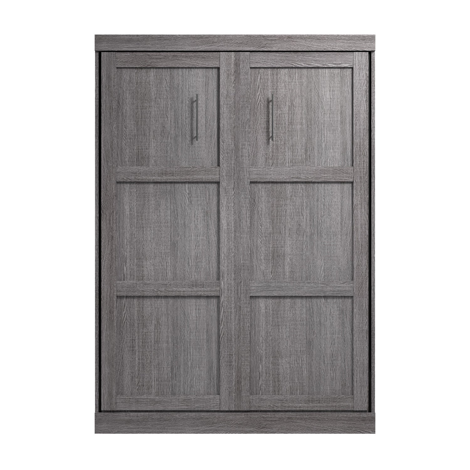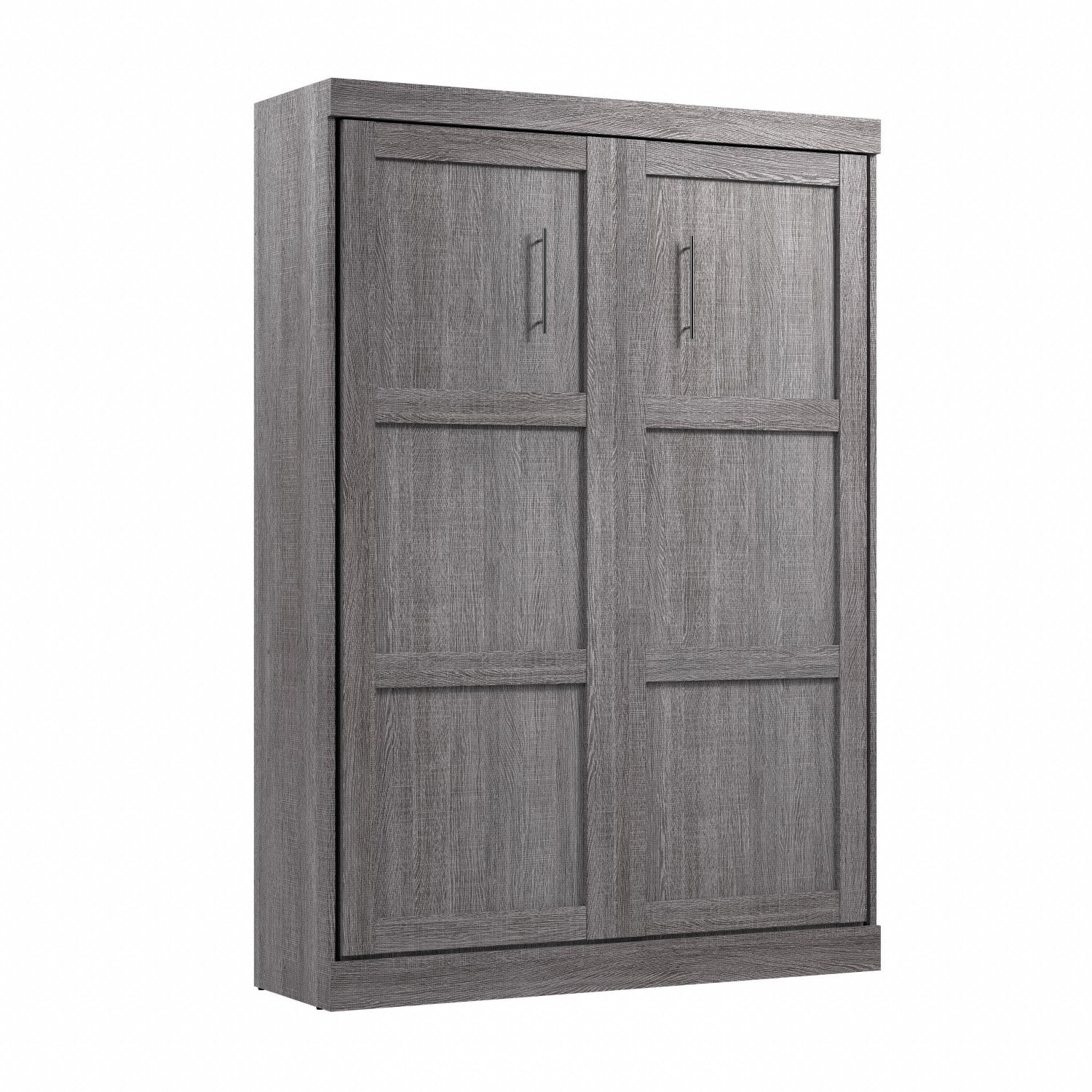 The Bestar Pur 59W Full Murphy Bed is the ideal space saver for a multipurpose room. Easily transform your home gym or office into a guest room. The mattress support uses flexible slats that follow the curves of the body and absorb pressure for maximum comfort. The Full Murphy bed can be used every night for a good night’s sleep. The bed folds up and down smoothly and quickly thanks to the dual piston system. Choose your own mattress since the bed accommodates most standard Full mattresses (8-10 inches thick, 60-90 lb, 54 x 75 inches) and supports up to 1000 lb (including mattress). The open bed extends 84. 9 inches from the wall. The cabinet must be anchored to a wall with a minimum ceiling height of 86. 4 inches. Allow a clearance of 30-36 inches around the open bed. The dual-mount wall bed mechanism attaches to the floor and wall for maximum stability and durability. To avoid risk of injury, the Murphy bed must be installed to the wall and floor structure by a professional or qualified person. Two people are required for assembly. Installation requires attachment to wood studs or masonry, removal of the baseboard, and drilling into the floor (if disassembly is required, holes may be covered with baseboards 0. 5 inches or thicker). All necessary hardware is included. Do not use this product for children or pets under 50 pounds (22. 7 kg). The Murphy Bed is backed by the Bestar 10 Year Manufacturer’s Warranty. North American made with globally sourced materials.