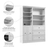 The Bestar Versatile 61W Closet Organizer System with Doors represents a beautiful closet storage solution. Get your home in order with this convenient closet organizer. The large storage cabinet with drawers and shelves has versatile organization options and turns any space into the closet of your dreams. Hang your favorite outfits on the clothing rods, and make use of the adjustable shelves for complete storage flexibility. Enjoy some convenience and privacy with concealed storage in the drawers opening on smooth ball bearing slides for an easy reach to your clothes and accessories. This closet system is also the perfect storage solution to organize your entryway, with plenty of space for your coats, jackets, hats, gloves, bags, and other essentials. Always have everything you need within reach thanks to this stylish closet organizer with drawers. Antique Iron hardware and attractive crown moldings complement the elegant finish of your choice. The closet organizers can be placed side by side or you can use them separately as needed. This closet organizer system is backed by the Bestar 10 Year Manufacturer’s Warranty. North American made with globally sourced materials.