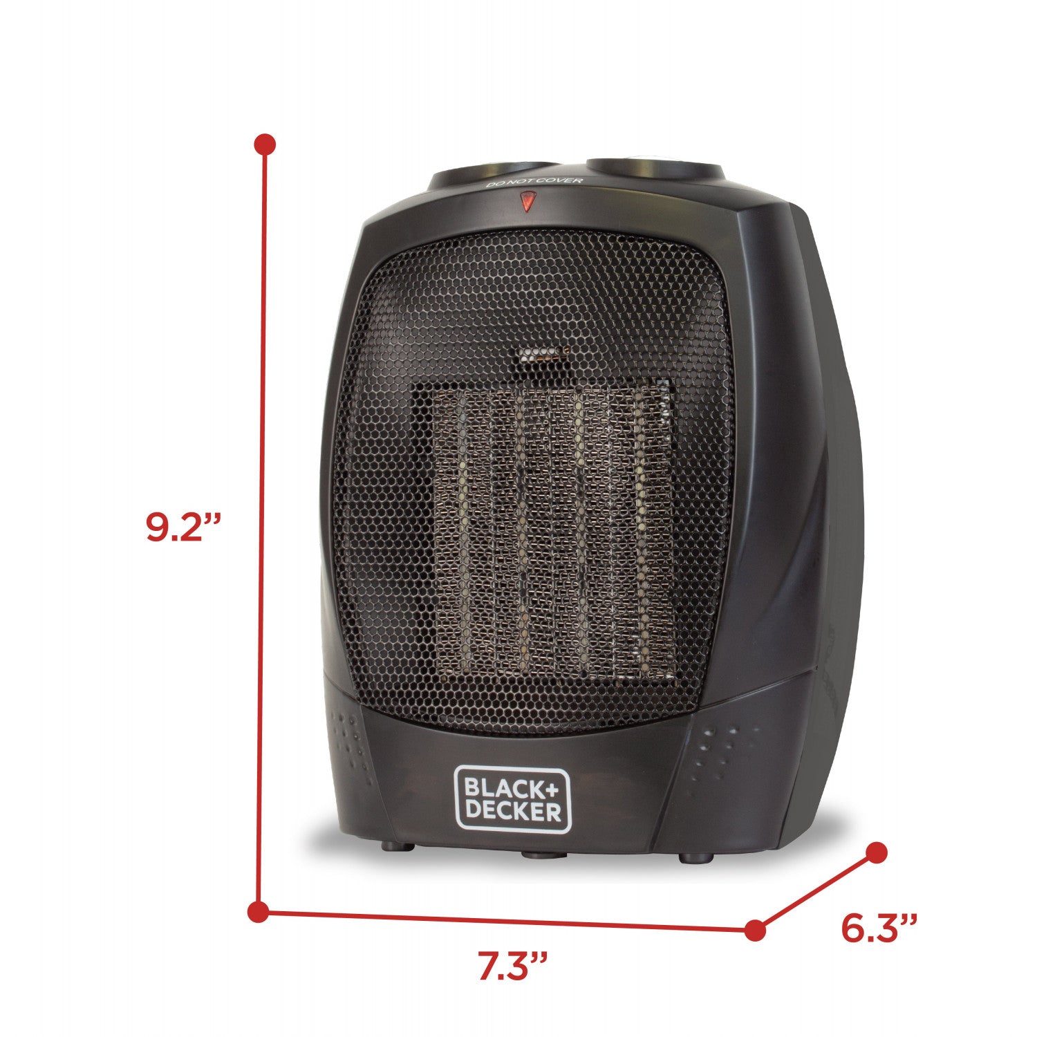 Savor real warmth and delight in a cozy atmosphere with this incredible Black+Decker mini portable heater. With compact dimensions of 7.3" x 6.3" x 9.2", our room heater is perfect for cold basements, RVs, dorms, offices, or any small spaces where extra warmth is needed.