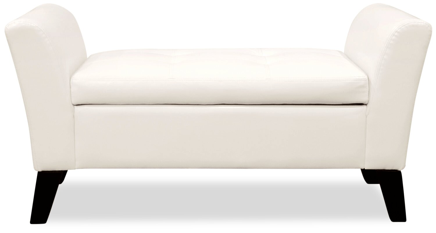 - The white faux leather is sophisticated and matches a variety of decor styles.