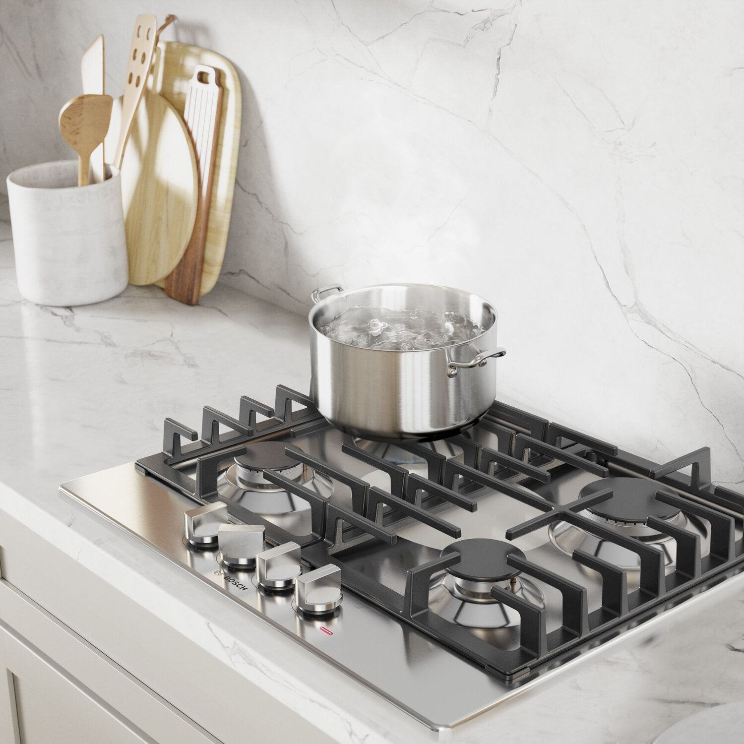 Easy Clean-Up: Heavy-Duty Cast-Iron Grates: High-Efficiency Burners: 4 Burners: Bold, Professional Design: |