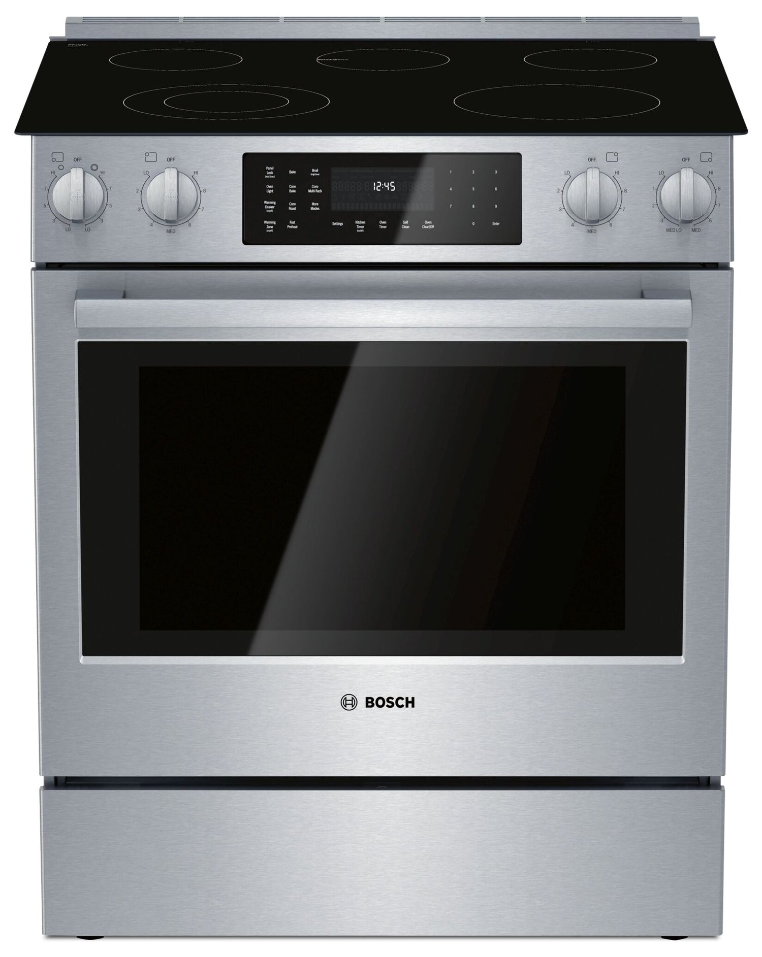 Gourmet cooking in the comfort of your own home is easy with this 4.6-cubic-foot 800 Series range by Bosch. With eleven oven modes to choose from, this oven can handle everything from your favourite chocolate chip cookies to a juicy roast beef. Take advantage of Genuine European Convection cooking that uses a third heating element to circulate hot air around the entire oven cavity for faster baking and even results on every rack. An extra-large window lets you easily keep an eye on what’s inside, and a warming drawer will keep dishes hot and ready to serve.