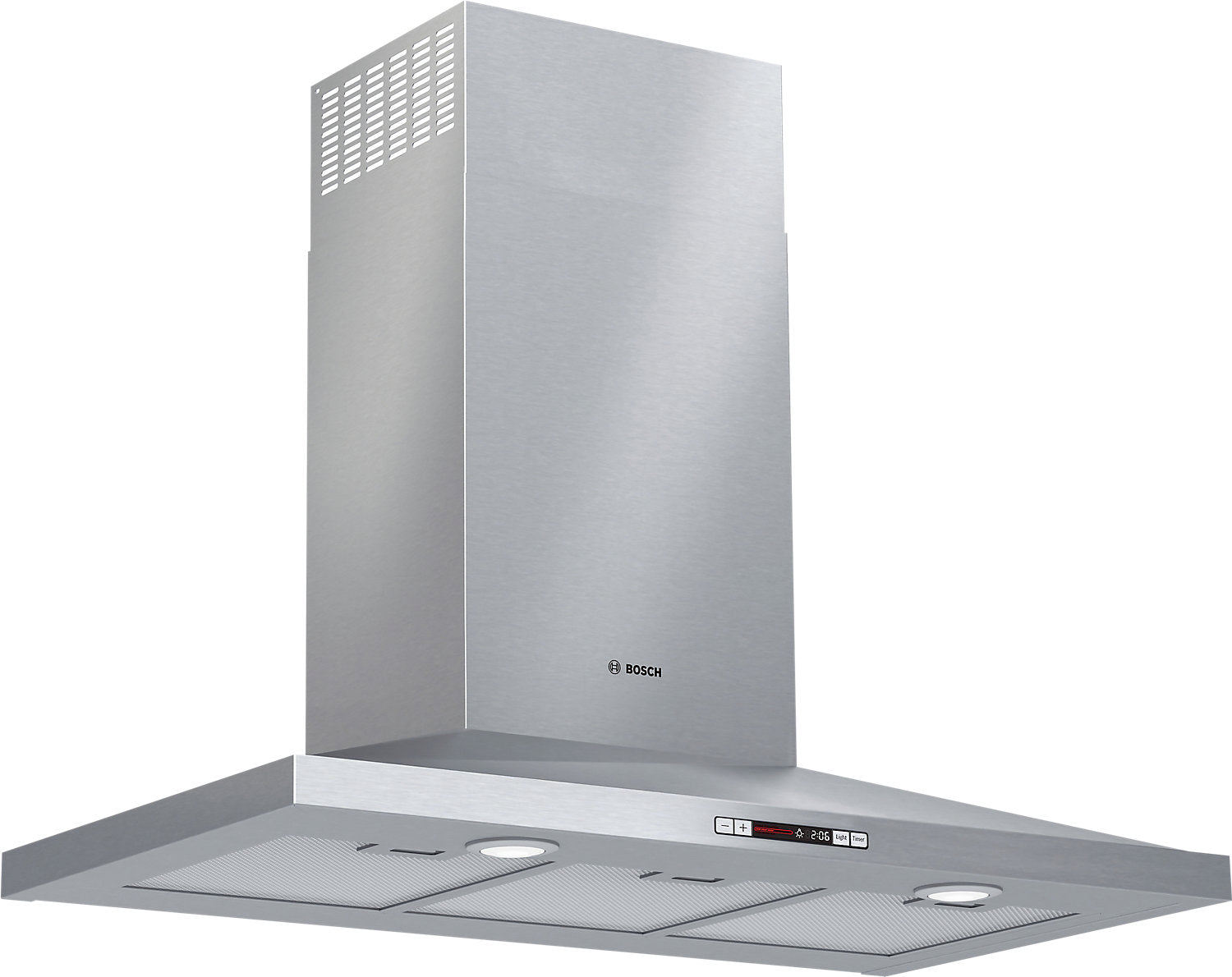 This Bosch 300 Series pyramid-style chimney range hood blows smoke and steam away from your cooking area, all while adding a touch of contemporary flair to your kitchen. Capable of blowing 300 cubic feet per minute (CFM), this is one chimney hood you can rely on no matter how big a meal you are cooking. The stainless steel design, three-speed LCD touch controls and dishwasher-safe filters also ensure that cleaning and maintenance are simple and easy.