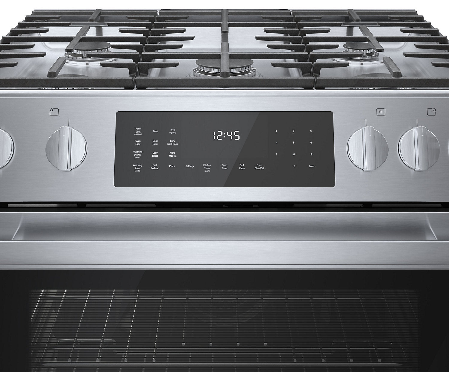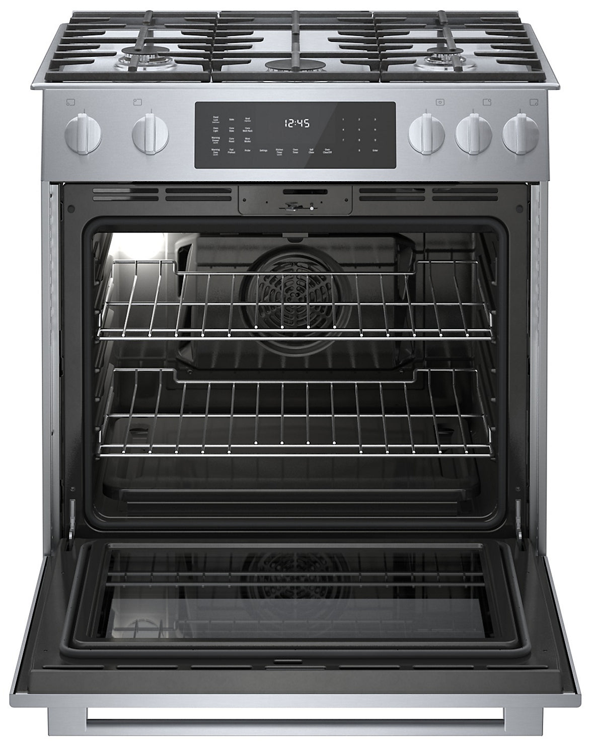 Gourmet cooking in the comfort of your own home is easy with this 4.8-cubic-foot 800 Series range by Bosch. With nine specialized cooking modes to choose from, this oven can handle everything from your favourite chocolate chip cookies to a juicy roast beef. Take advantage of convection cooking that uses a powerful heating element to circulate hot air around the entire oven cavity for faster baking and even results on every rack. An extra-large window lets you easily keep an eye on what’s inside, and a warming drawer will keep dishes hot and ready to serve.