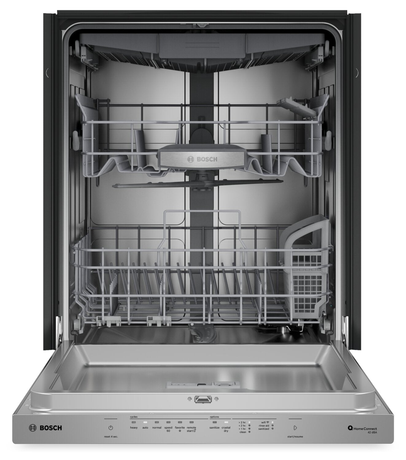 CrystalDry: 42 dBA: PrecisionWash: Flexible 3rd Rack: Beautiful Stainless Steel Interior: Wi-Fi Enabled Home Connect®: |