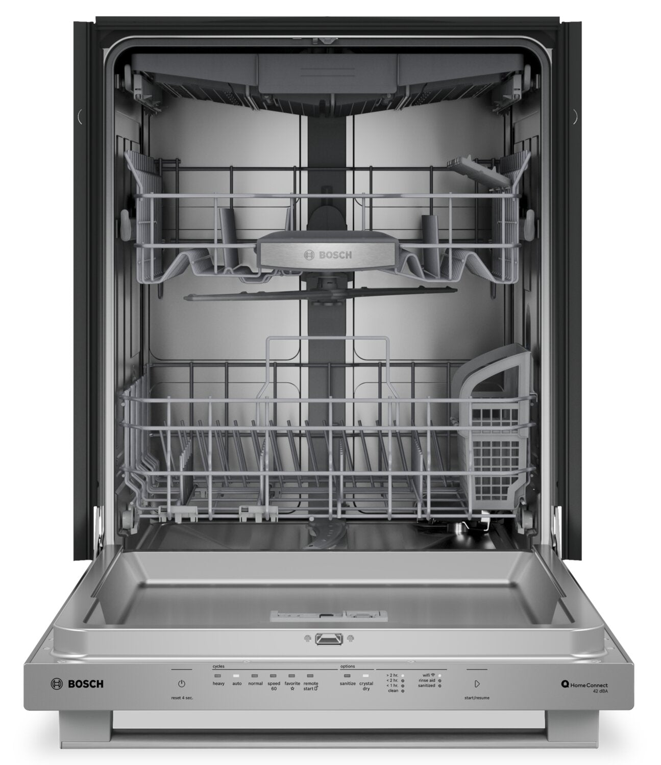 CrystalDry: 42 dBA: PrecisionWash: Flexible 3rd Rack: Beautiful Stainless Steel Interior: Wi-Fi Enabled Home Connect®: |