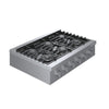 Upgrade your built-in cooktop to this modern, stainless steel Bosch 800 Series gas rangetop. Don't feel like cleaning after an evening of cooking? Put the dishwasher safe grates through a cycle for a quick clean – no mess or elbow grease required. This six-burner stainless steel slide-in gas rangetop provides the look and performance of a commercial-style appliance, with convenient features like an OptiSim® burner offering greater flame control at the lowest settings for precise simmering and melting.