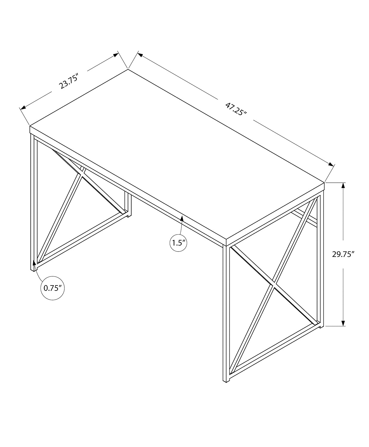 This sleek Brady desk is a smooth combination of function, durability and design in a contemporary style. With a thick panel top and black crisscrossed metal legs, this desk will add a crisp look to your office. The weathered appearance of the reclaimed wood look brings a cool rustic touch. Whether serving as your main workspace or as a secondary surface for a busy office, this Brady desk brings a practical, handsome display.
