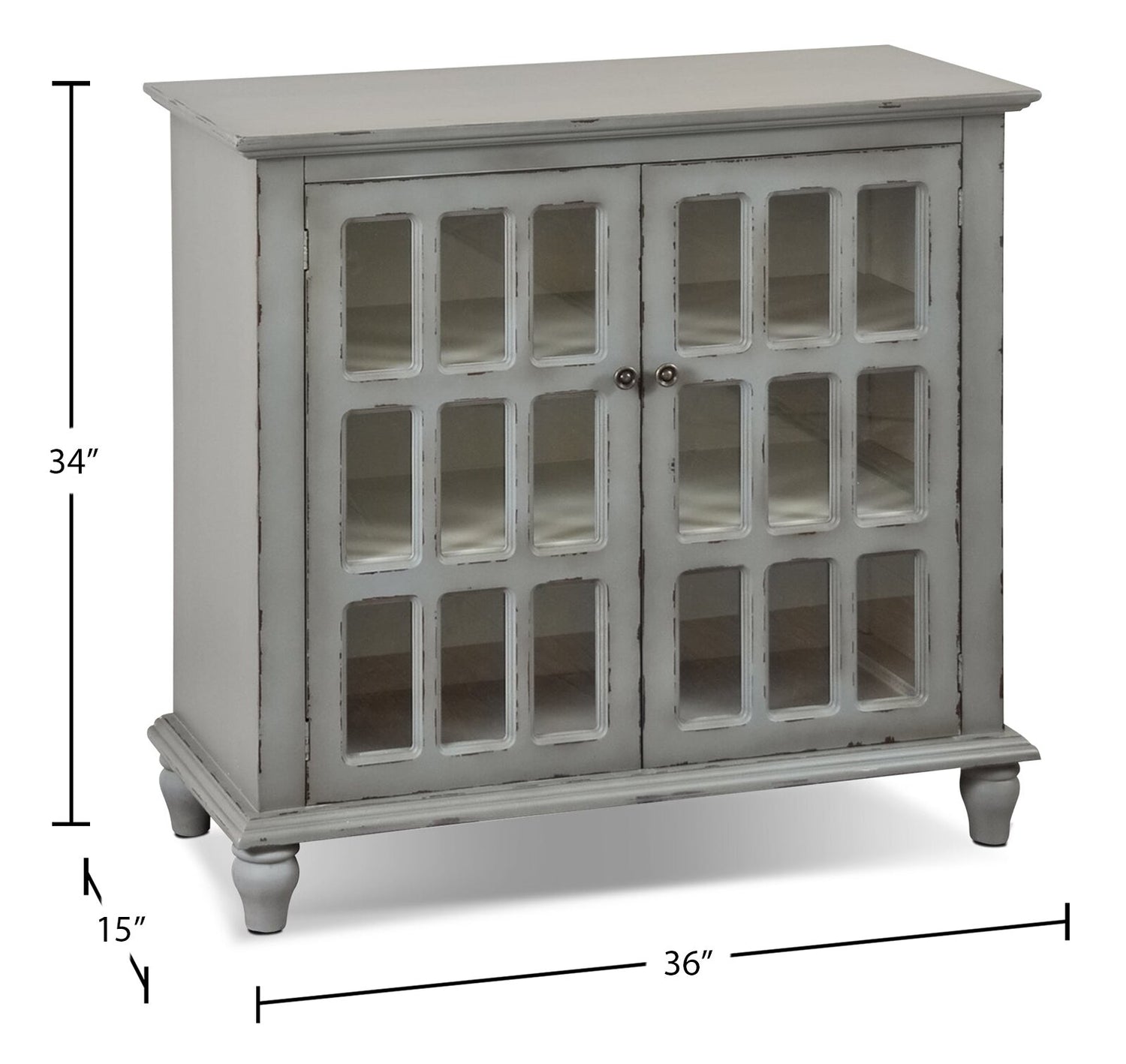 Add character to your home with this Bray accent cabinet. Vintage vibes from this hand-crafted cabinet and its lightly distressed antique finish create a cozy, country cottage feeling in any home. Store anything from books and decor to cookware thanks to the functional two-door design. What's more, you can proudly display your cookie jar collection while keeping dust away thanks to the window pane doors.