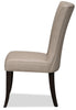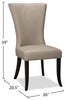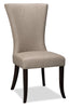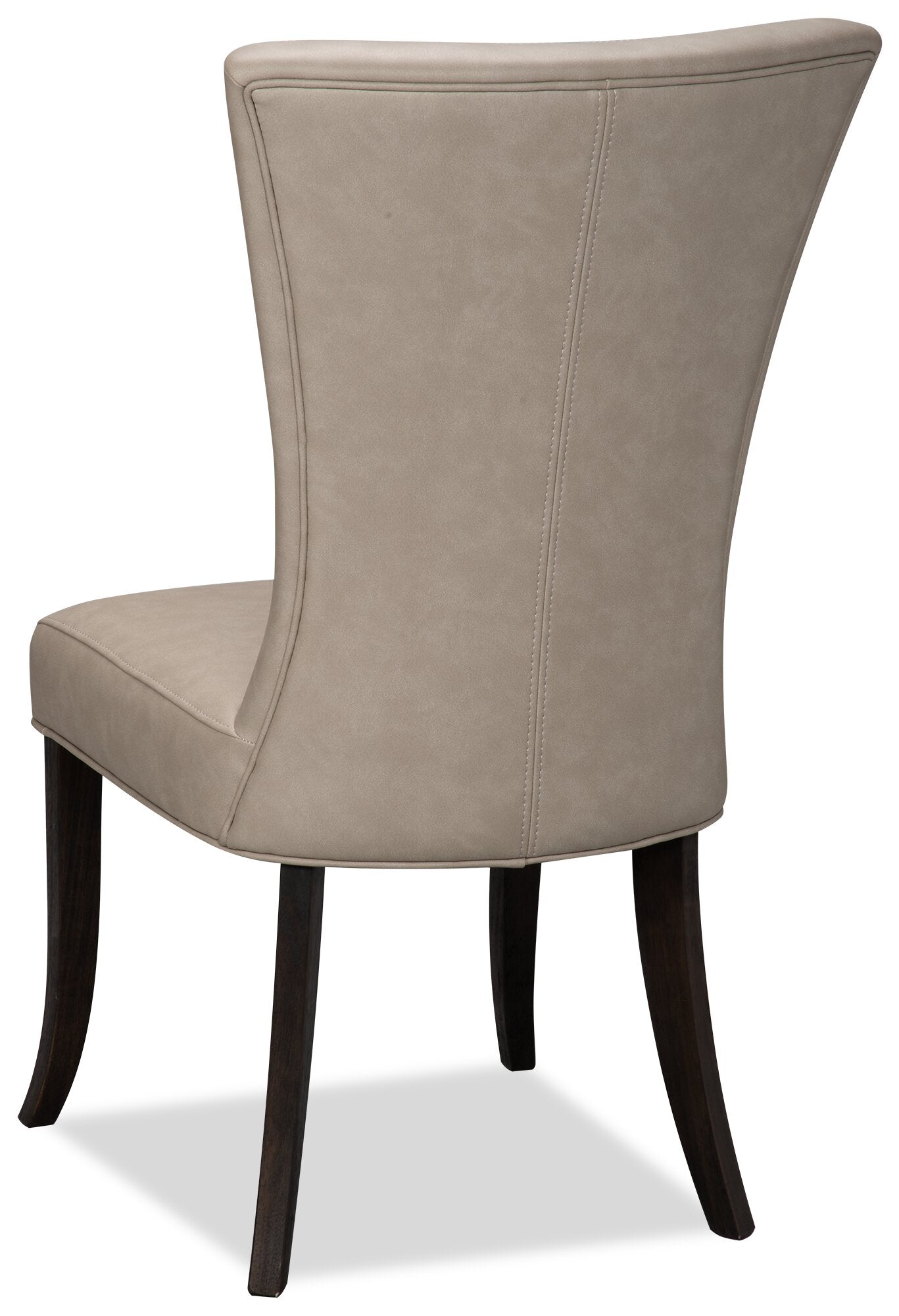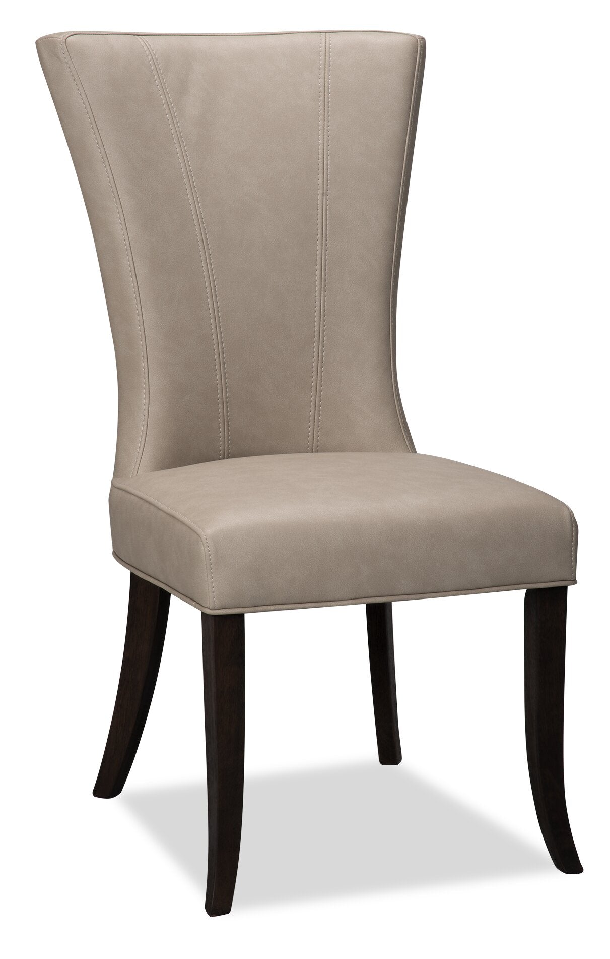 Discover the perfect utility piece for your home with this Bree dining chair. Whether you need a comfortable chair for a formal dinner or a casual piece for poker night, you'll find what you need in the rugged good looks of this cozy seat. The suede-look fabric provides a classic style that suits many decor themes, offering comfort and texture in one handsome package. From top to bottom, the V-shaped motif extends through the curving of the backrest and accent stitching down to the tapered wooden legs.