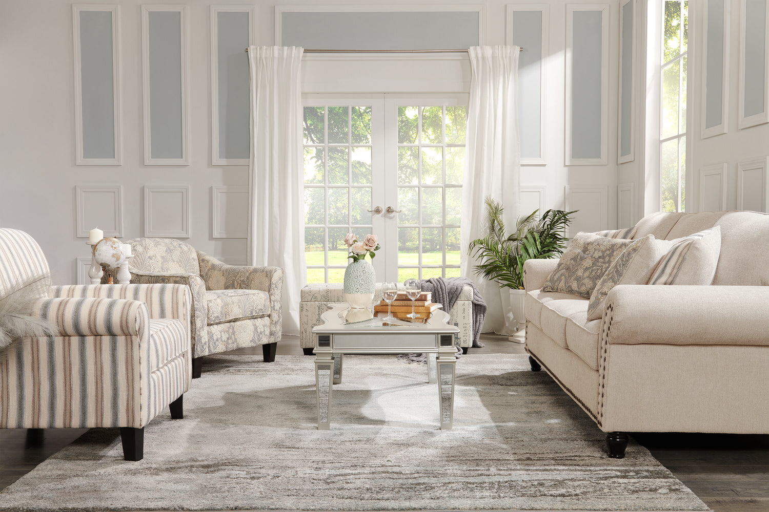 - Blues and greys softly mix to bring a gentle touch of colour to your floors.