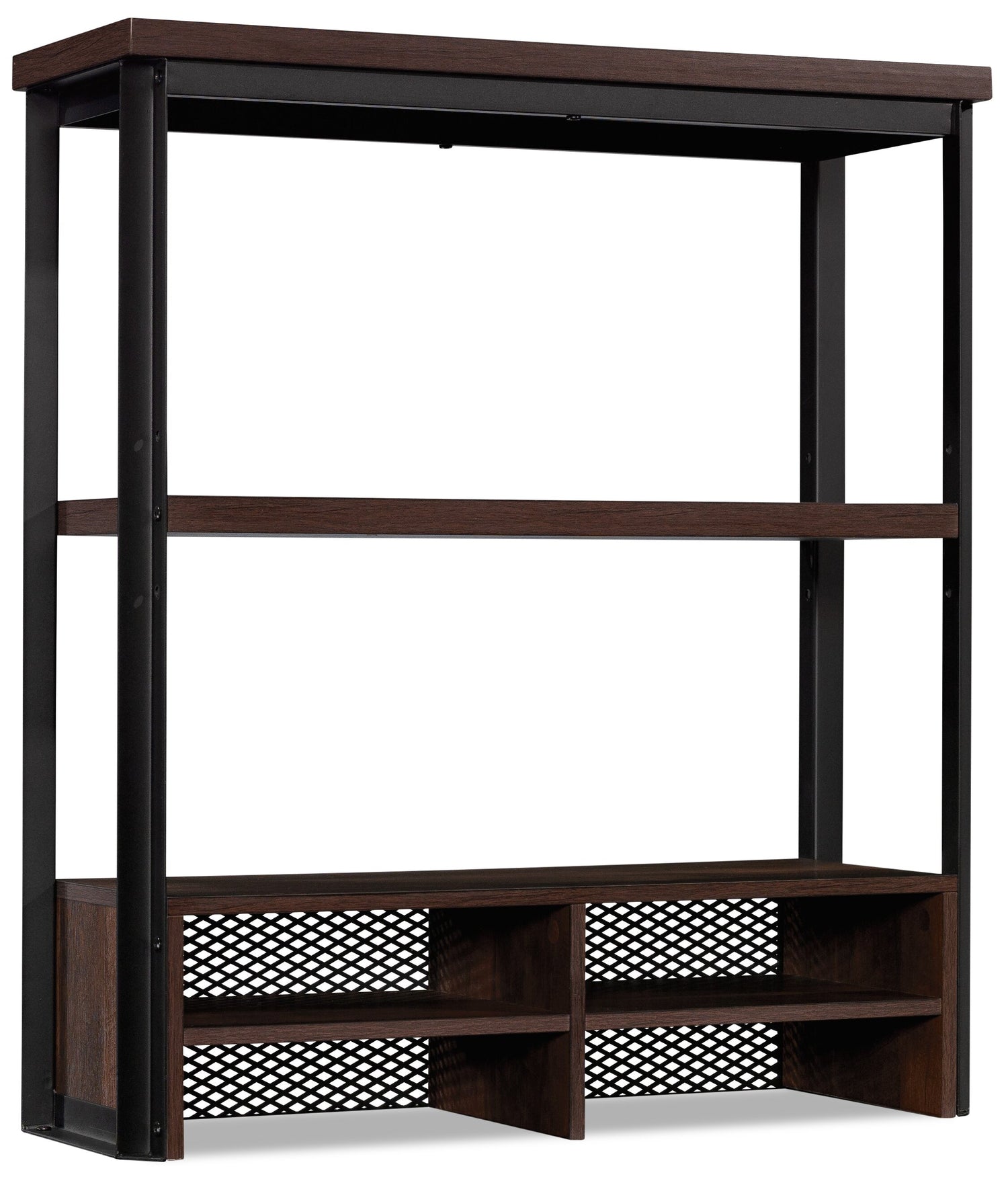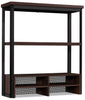Create a stunning focal point while increasing the storage capabilities in your home with this Briarbrook utility hutch. This piece features one large adjustable shelf for versatile display options of various-sized items, while small cubby organizers provide more storage areas to place your desktop essentials. With a powder-coated metal frame for durability and design, your new organizational unit will last for many years to come. Finished in a dark brown tone, this stylish hutch adds a unique element to any room in your home or office.