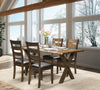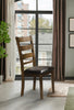 An old-world look with new-world craftsmanship, the Brienne Dining Chair features a warm burnished oak finish. A supportive ladder-back design gives you a place to lean back securely, while a padded seat cushion provides comfort and contrast with its dark brown faux leather upholstery. Solid wood framing and block legs ensures this chair will be a sturdy cornerstone of your home for years to come. Evoking the warm and inviting presence of a cozy rustic cabin, the Brienne chair will have you relaxing like you're at the cottage in no time. Coordinating dining bench is also available.