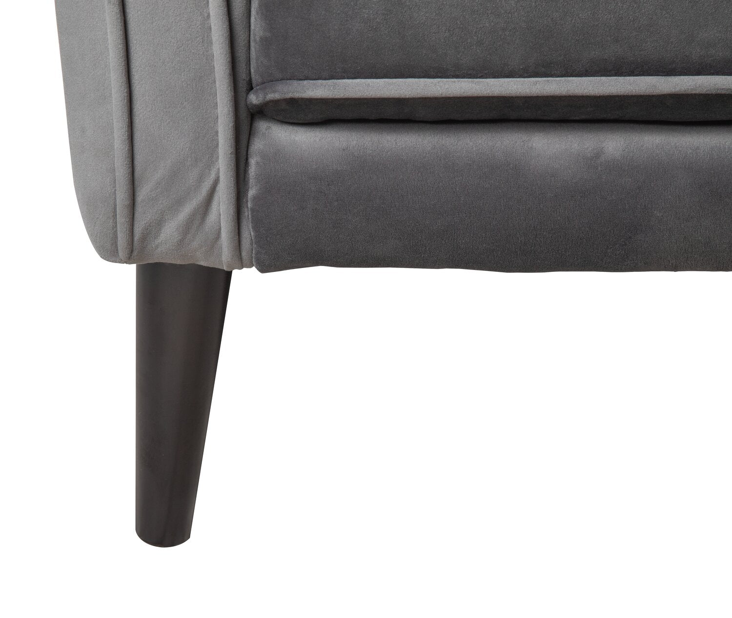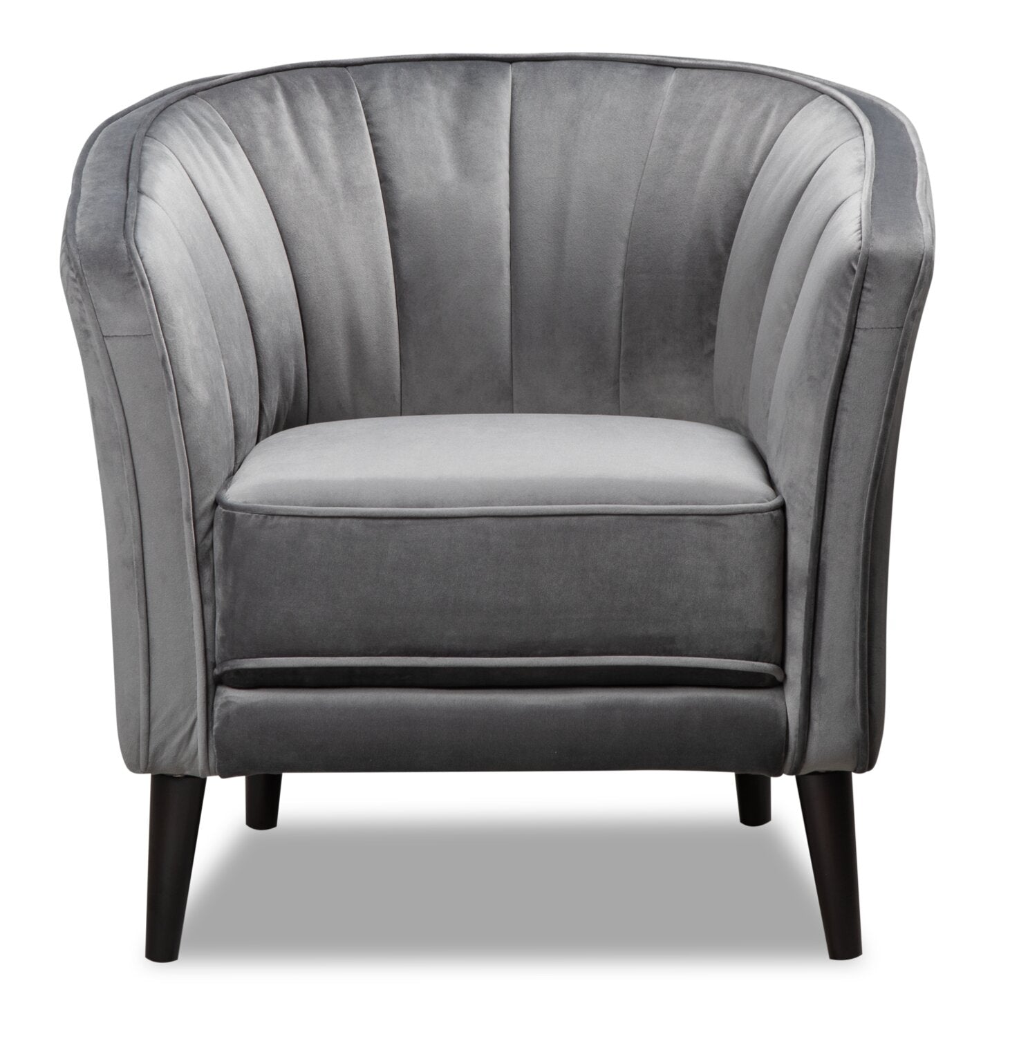 Add a glamorous pop of colour to your living space with this Brinley accent chair. Lavish velvet fabric envelops the furniture frame with a serene shade of grey to complement your home decor. High-density foam is packed into the seating area, including the channel-stitched backrest, to provide comfort while you relax. At the same time, both the curved design and matching fabric piping make this piece refined enough to meet your style standards. Resting on robust wood legs, this accent chair brings equal parts elegance and enjoyment to your home.