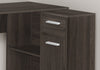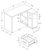With a generous worksurface and built-in storage, this Bristol L-shaped computer desk is ideal for students or offices with limited space. The main desktop panel overlaps the storage unit on the right to create a second, slightly lower work surface. The convenient storage unit features two shelves, one drawer and a cabinet to neatly organize folders and school supplies. Finished on all sides in a wood-look laminate, this space-saving desk gets the job done.