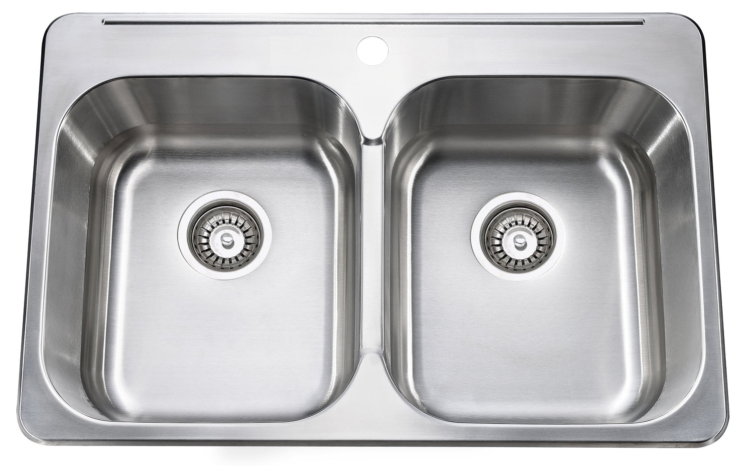 This Bristol Sinks drop-in / top-mount kichen sink features a double bowl configuration in an undermount and offset bowl stainless steel format. With a single faucet hole, a lustrous soft brushed satin finish and and a drop-in design for easy installation on most laminate countertops. Scratch and stain-resistant, the commercial-grade premium satin brushed finish guarantees durability and lasting shine. Experience the quality of the Bristol Sinks Double Stainless Steel Collection and bring your design ideas to life.