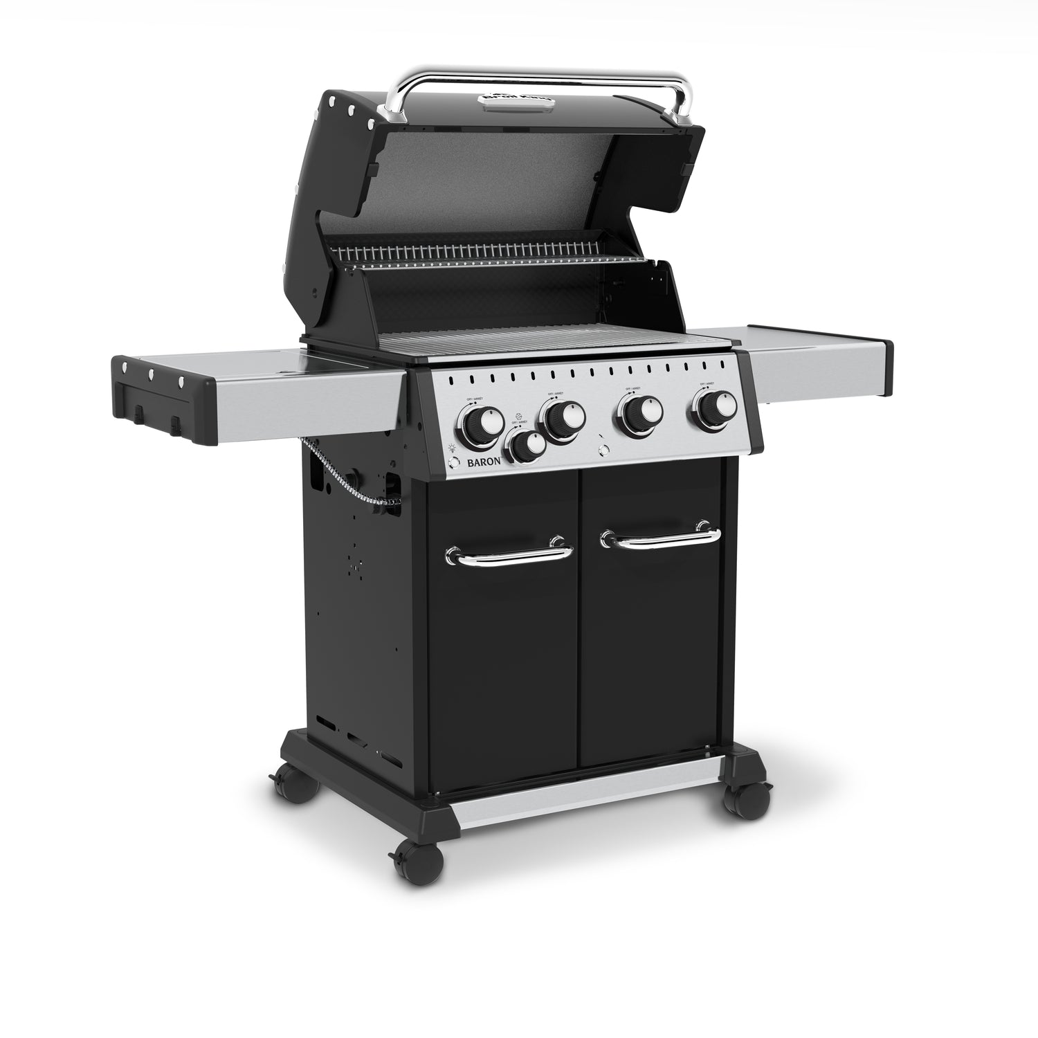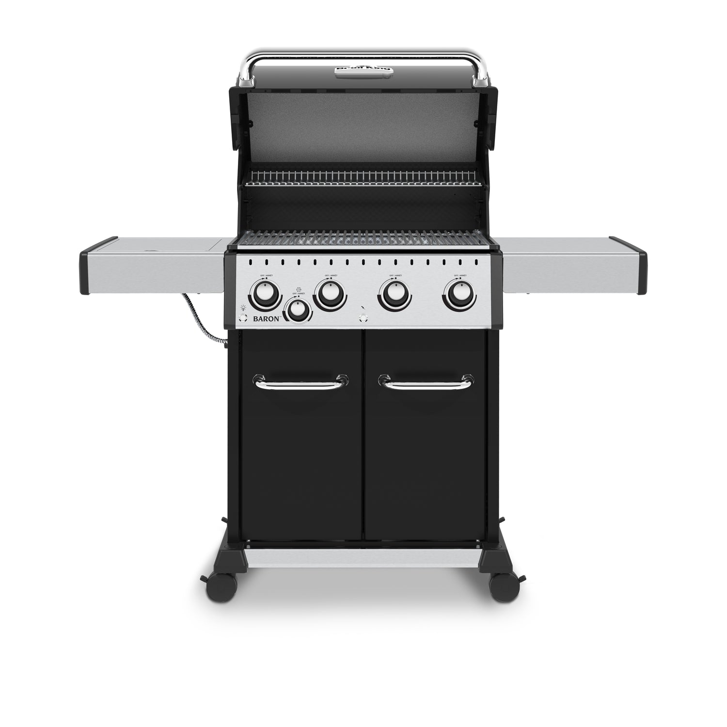 The Broil King® Baron™ Pro series is the perfect addition to any household. These grills come equipped with a rust-resistant, Limited Lifetime Warranty Therma-Cast™ cookbox, professional-grade stainless steel cooking grids and warming rack, and Dual-Tube™ stainless steel burners. Other added features include fold-down, locking side shelves, a unique grease management system and attractive LED control knob lights. These grills are designed for the ultimate grilling experience.