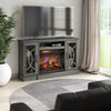 Create a cozy atmosphere with the elegant charm of this Brooke electric fireplace. Finished in a grey tone with black metal hardware, this piece brings plenty of neutral style to fit your modern living space, but with a classic touch. The 5,200 BTU heater provides a heating zone of up to 1000 square feet, great for heating small spaces, while the top accommodates a TV up to 70 inches. Two cabinets and an open shelf help keep your consoles and electronics stored accessibly. Plus, with the electric firebox insert, featuring a 3D flame, realistic logs and a no-heat mode, you can soak up warmth all year round – right in your own living room.