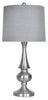 Create the modern look you want with this table lamp. The brushed nickel base is formed into an elegant shape, making this a gorgeous decor piece for your side table. Topping the lamp is the grey linen shade, which features metallic threads for a touch of glam. Plus, three light intensities let you choose the level of brightness that works for you.