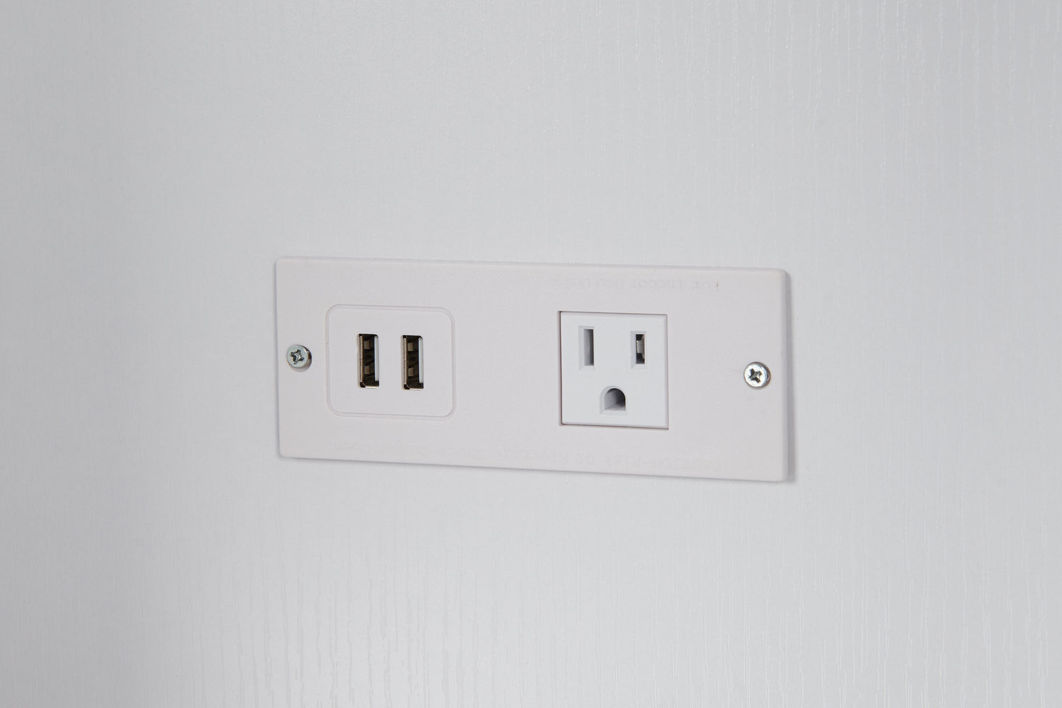 | Hardware | Has a power outlet and two USB ports on the back panel. |