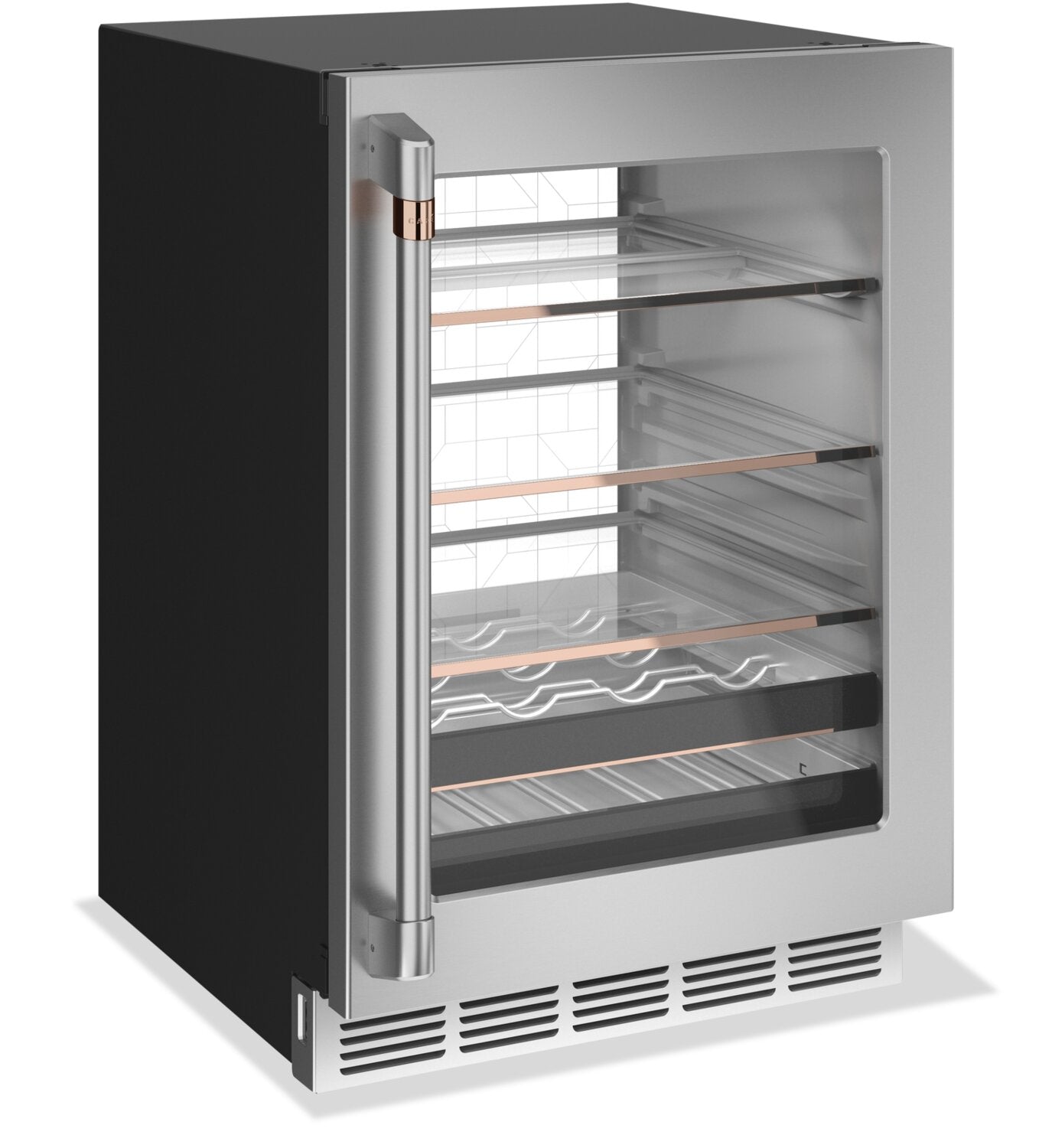 14-Bottle, 126-Can Capacity: LED Light Wall: Magnum Bottle Storage: Smart Technology: Quick Space Shelf: Flush Installation: Articulating Door Hinges: Triple Pane Glass Door: |