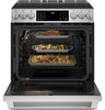 Unleash your culinary creativity with this induction range from GE Café that not only offers a modern look, but also an array of helpful features designed to take your cooking to the next level. The seamless glass cooktop features premium induction heating allowing your pots or pans to heat up faster and more safely, plus the smooth top is easy to wipe clean. The electric oven uses European-style convection to help your meals cook evenly inside and crispy on the outside. Keep food hot and ready to serve with a warming drawer located conveniently beneath the oven.