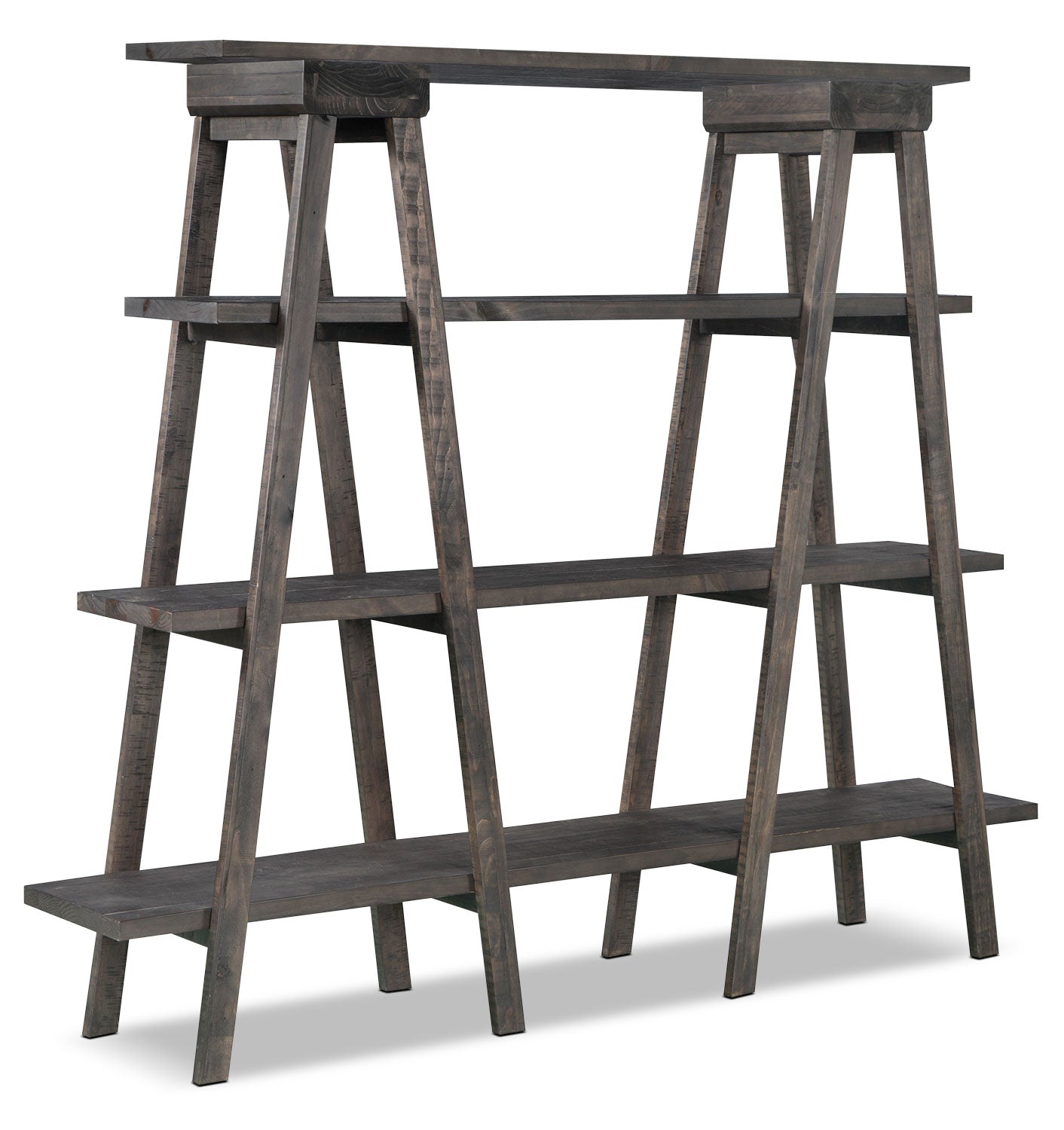 Create your sophisticated country paradise with this Calistoga open bookcase. A rustic, weathered charcoal finish shows off the pine wood's rugged grain. Enjoy the modern look the ladder design brings to your living room or home office. With four shelves, you won't run out of display space for your trophy collection. Plus, the weathered charcoal finish shows off the smooth wood grain.