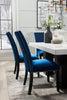 Add some contemporary elegance to your dinner tonight with this Cami five-piece blue dining room set. Pure white marble decorates the top and sides of the table, with veins of contrasting colour running through the stone for an extra pop of natural style. Soft, blue velvet lends a restful shade to your dining space, while supple memory foam makes your seat extra comfortable. A row of glittering silver nailheads line the edges of the seat and the back to add a layer of sparkle. Add this Cami set to your dining space and let this stone-cold stunner add a dash of sophistication to your mealtime.