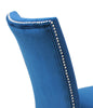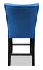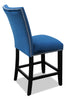 Add some contemporary elegance to your dinner tonight with this Cami counter-height blue dining chair. A tall, gently curving seatback rises up to keep your posture perfect. Soft, blue velvet adds a restful shade to your dining space, while supple memory foam makes your seat extra comfortable. A row of glittering silver nailheads line the edges of the seat and the back to add a touch of sparkle. Sink into the Cami and let dinnertime become the highlight of your day.