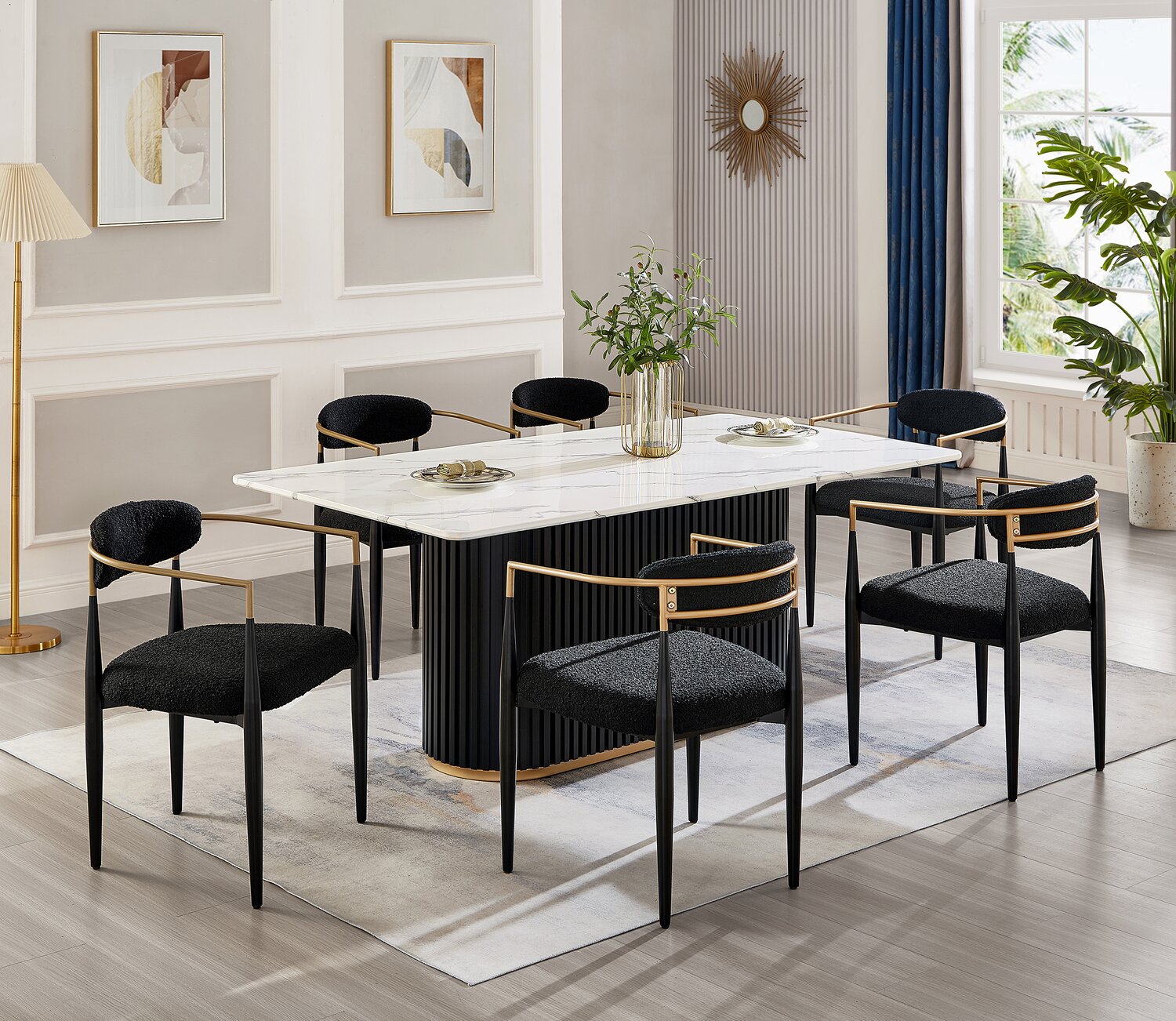 | Accent Details | Gold armrests add a glam touch to the modern design. |