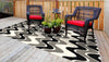 - Add a modern touch to your outdoor space with the black, grey and cream hues of this rug's rounded zig-zag design.