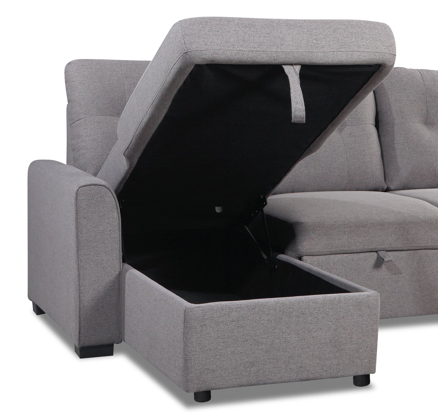 | Storage Options | Lift the chaise cushion to store blankets, pillows and other bedtime necessities for this sleeper sectional. |