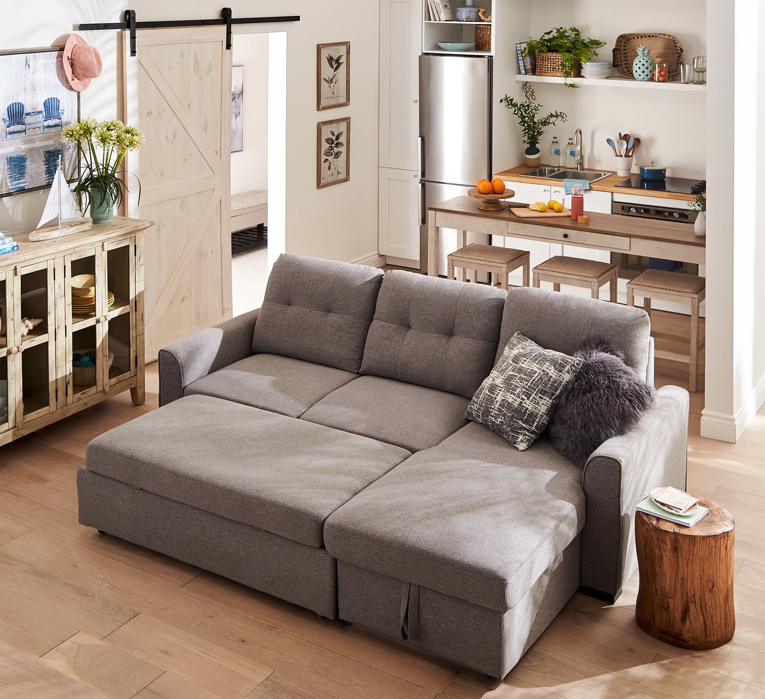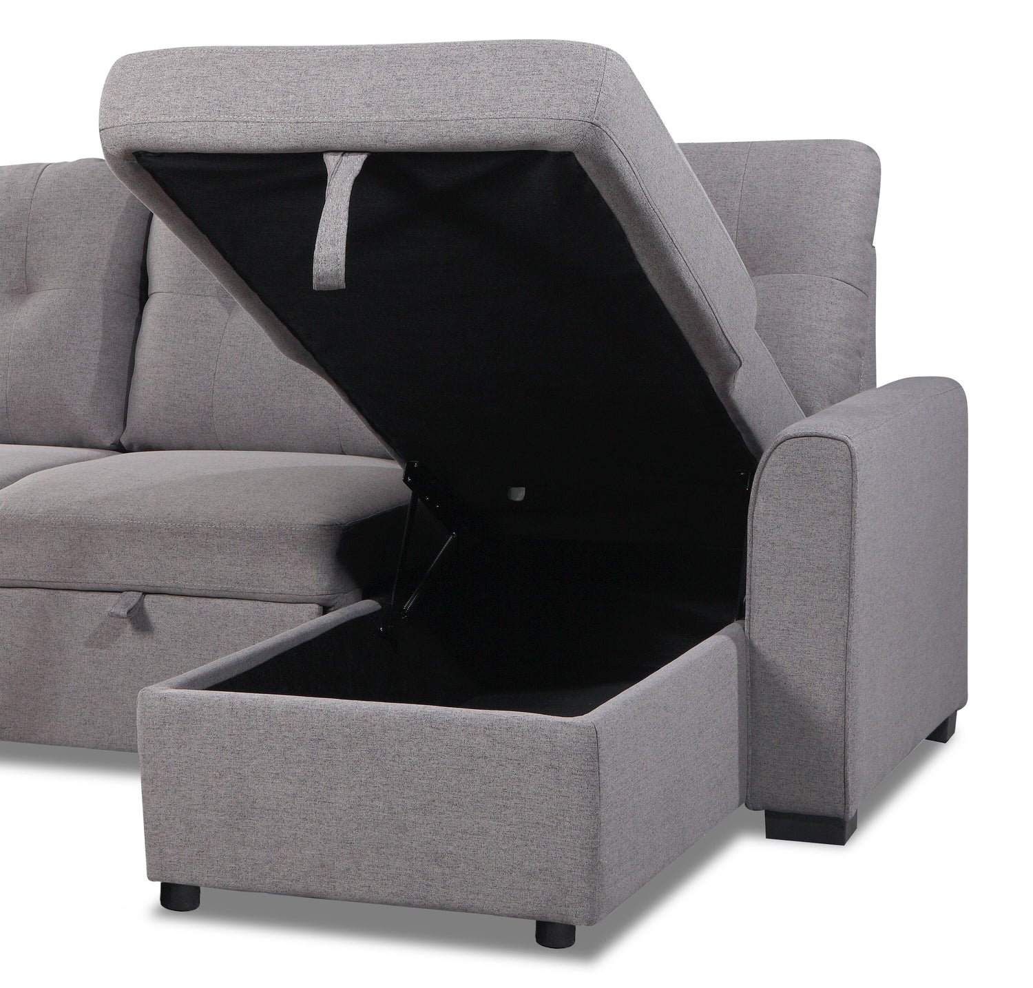 | Storage Options | Lift the chaise cushion to store blankets, pillows and other bedtime necessities for this sleeper sectional. |