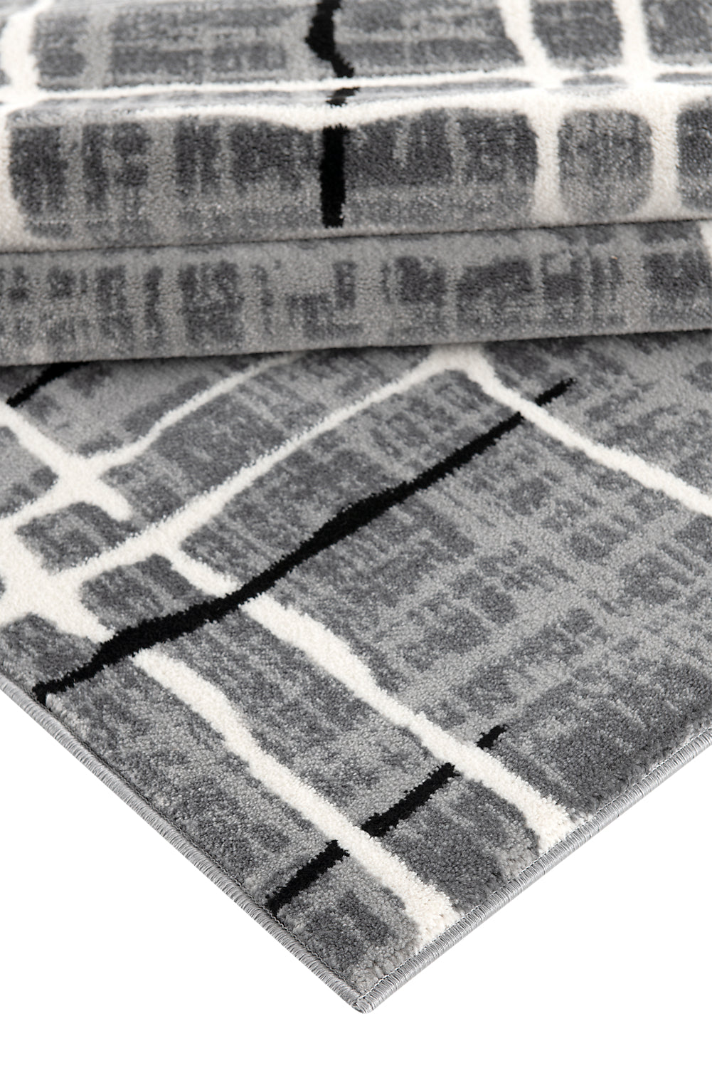 Crosshatched lines hint at distant structures as they emerge from a shadowy background on this alluring Caspian area rug. Veins of cream, black and grey run up and down this piece for an abstract series of intersections that provide a sense of depth perspective. Machine woven for durability, the polypropylene thread is tightly packed for colour fastness that is naturally stain resistant – and it resists fading too. Serged edges present a tidy image that helps prevent fraying while the underside is reinforced with jute and polyester backing for added strength.