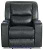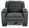 Savour the soothing feeling of this Cato power recliner with power headrest. High-density foam fills the entire seating area and is wrapped in breathable leather-look fabric. This way, you can take comfort in the chair's cushioning power without getting too cold or too hot. Fashionable details, like the smoothly curved arms and straight stitching lines, enhance your home's style profile. The best parts of this chair, however, are the power adjustment settings. Simply use the buttons to adjust your head and body until everything feels just right.