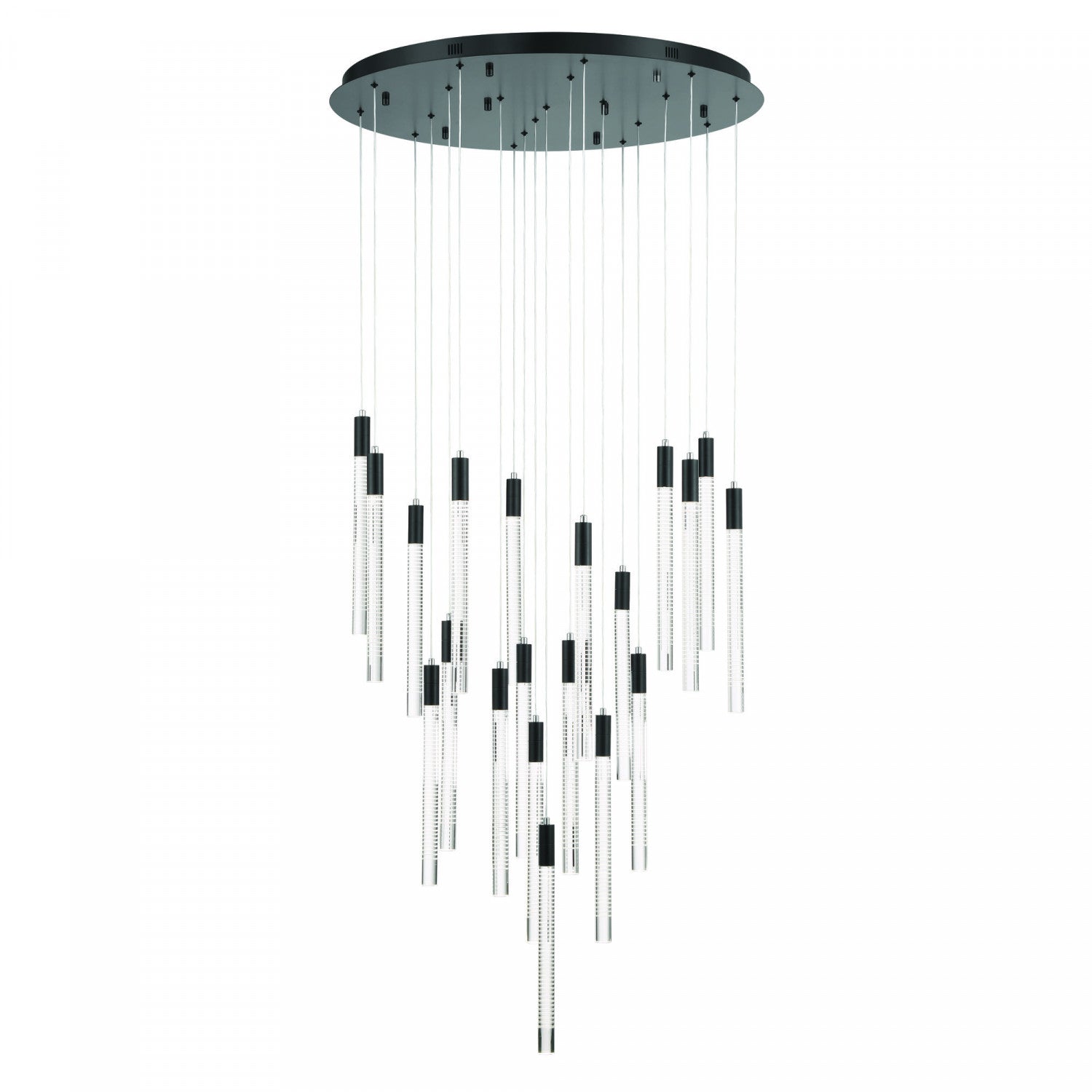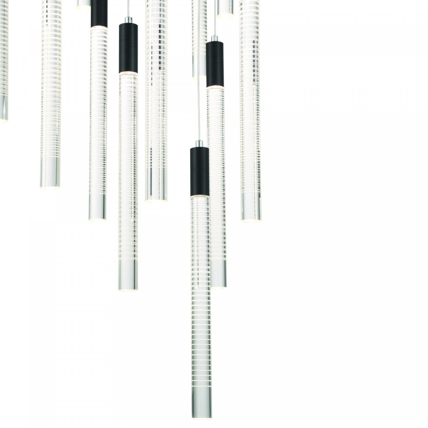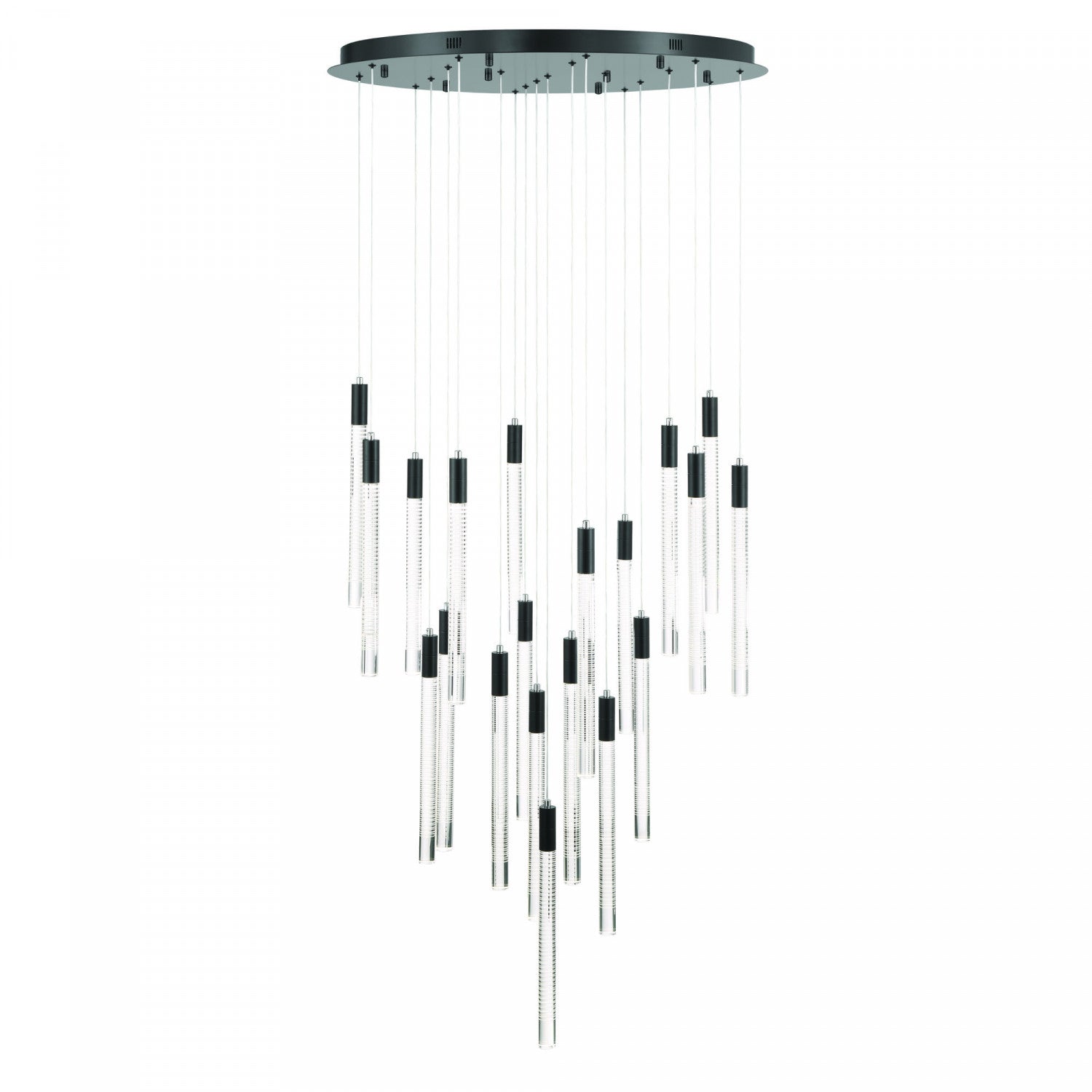 The celine 20 light chandelier is a stunning masterpiece of modern elegance, featuring a rich brass-plated canopy and holders that exude warmth and sophistication. Its clear glass rods, adorned with intricate laser-etched lines, create a mesmerizing play of light and texture. Illuminated by led technology, this chandelier offers a blend of energy efficiency and brilliance. With easily height-adjustable wires, it adapts seamlessly to any space, making it a breathtaking centerpiece for contemporary interiors. Great for an entry, foyer, or over a large dining room table.